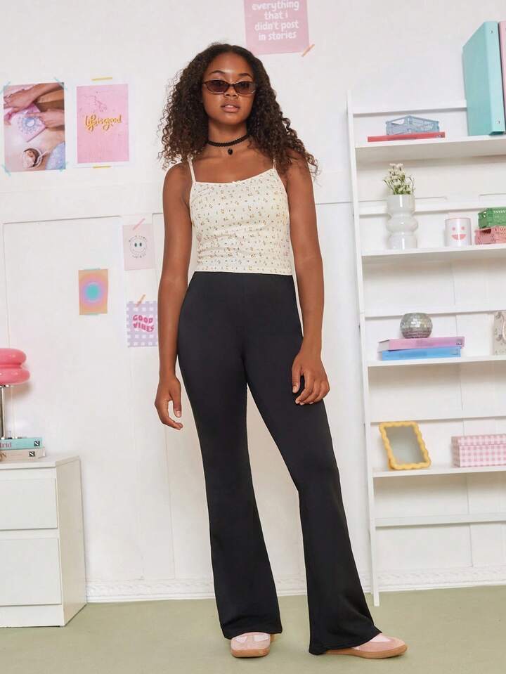 بنطلون واسع ذو لون أحادي مناسب للفتيات المراهقات للربيع/الصيف