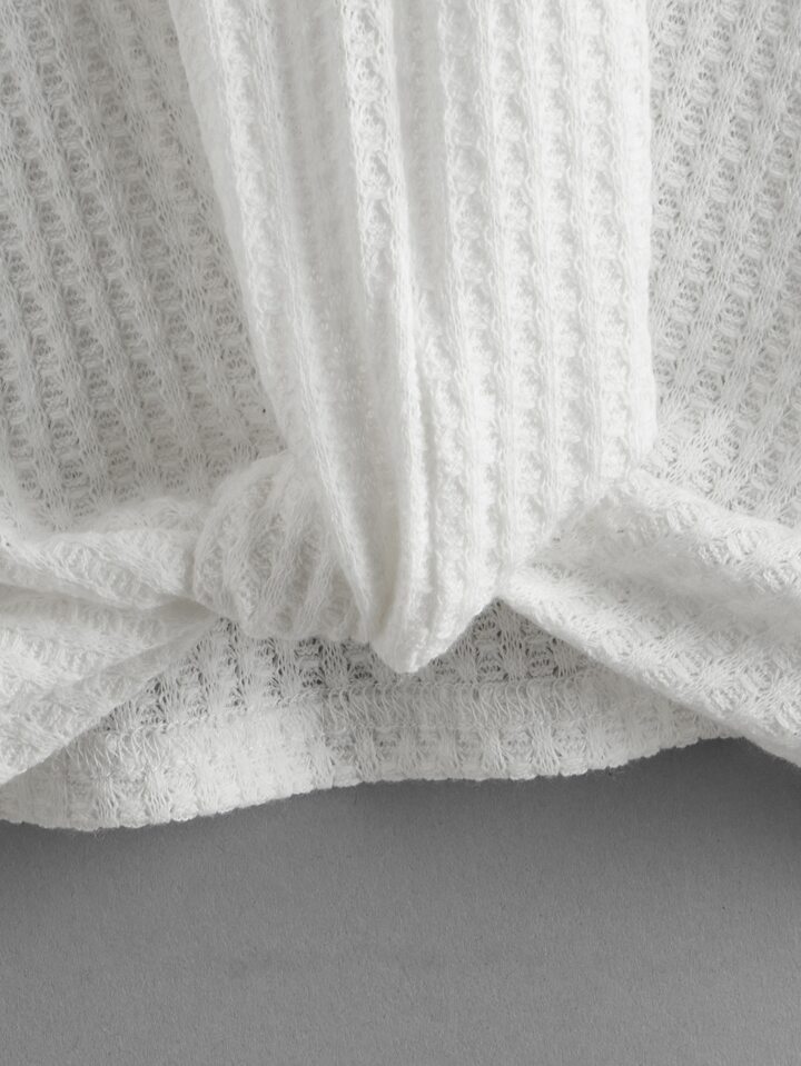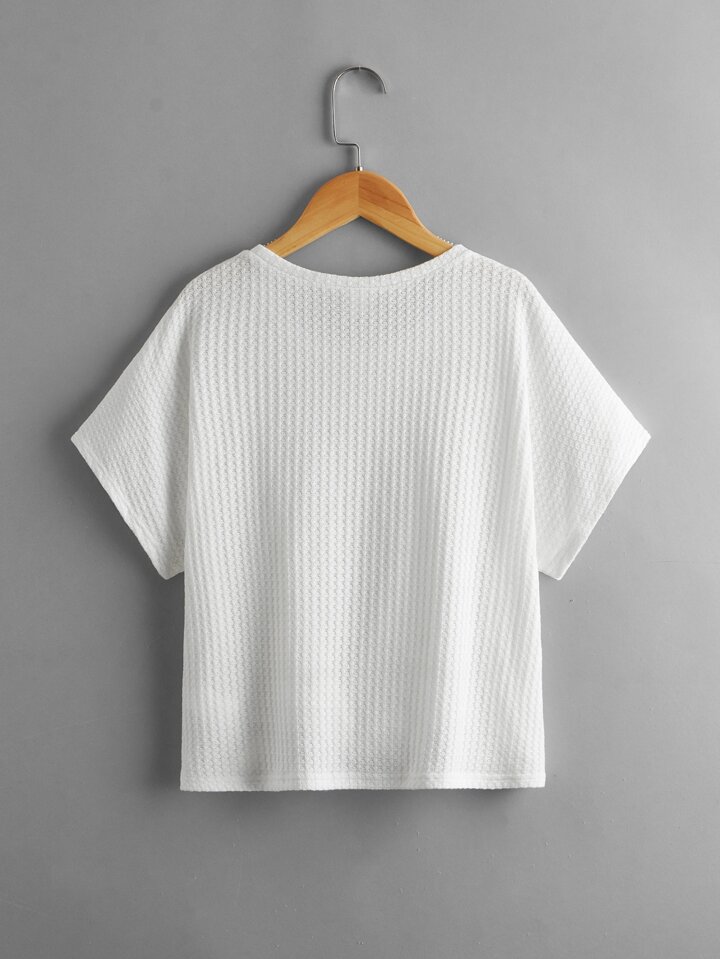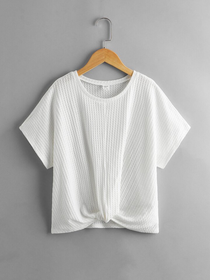 تي شيرت محبوك وافل بحافة مطوي للفتيات المراهقات