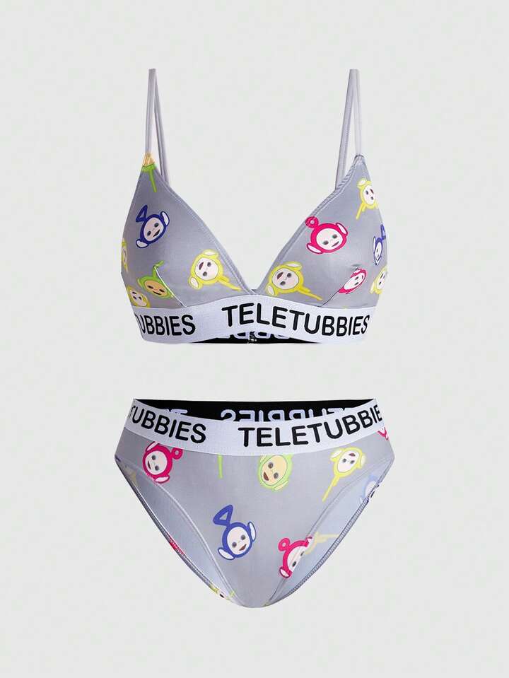 Teletubbies X ROMWE مجموعة سترة وسروال داخلي بنقشات حرفية وكرتونية مضحكة للنساء