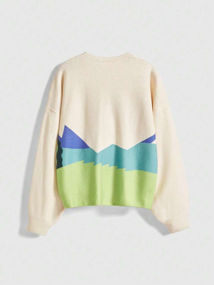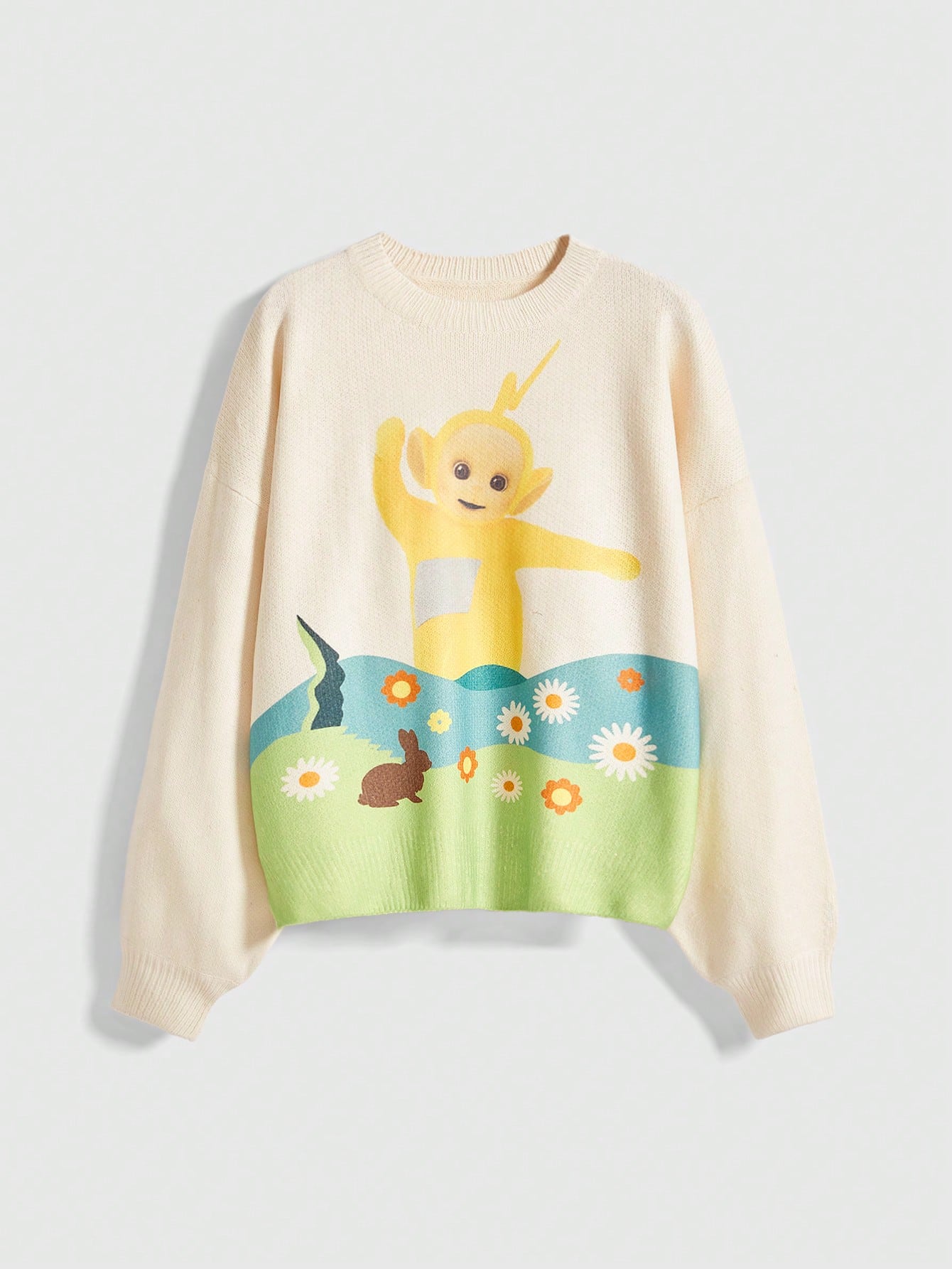 Teletubbies X ROMWE كنزة صوفية كنزة بياقة طاقم بنمط كرتوني جميل من طراز Y2K للنساء