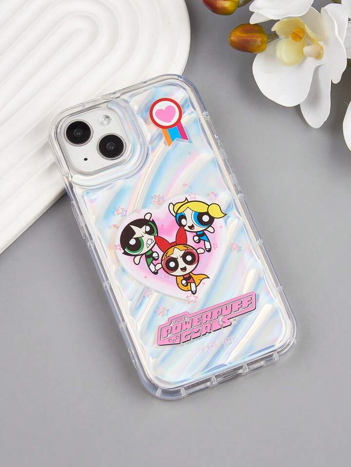The Powerpuff Girls | ROMWE 1 جراب هاتف من البولي يوريثين مطبوع عليه رسوم الأحرف الكرتونية مع ورق ليزر متوافق مع آيفون