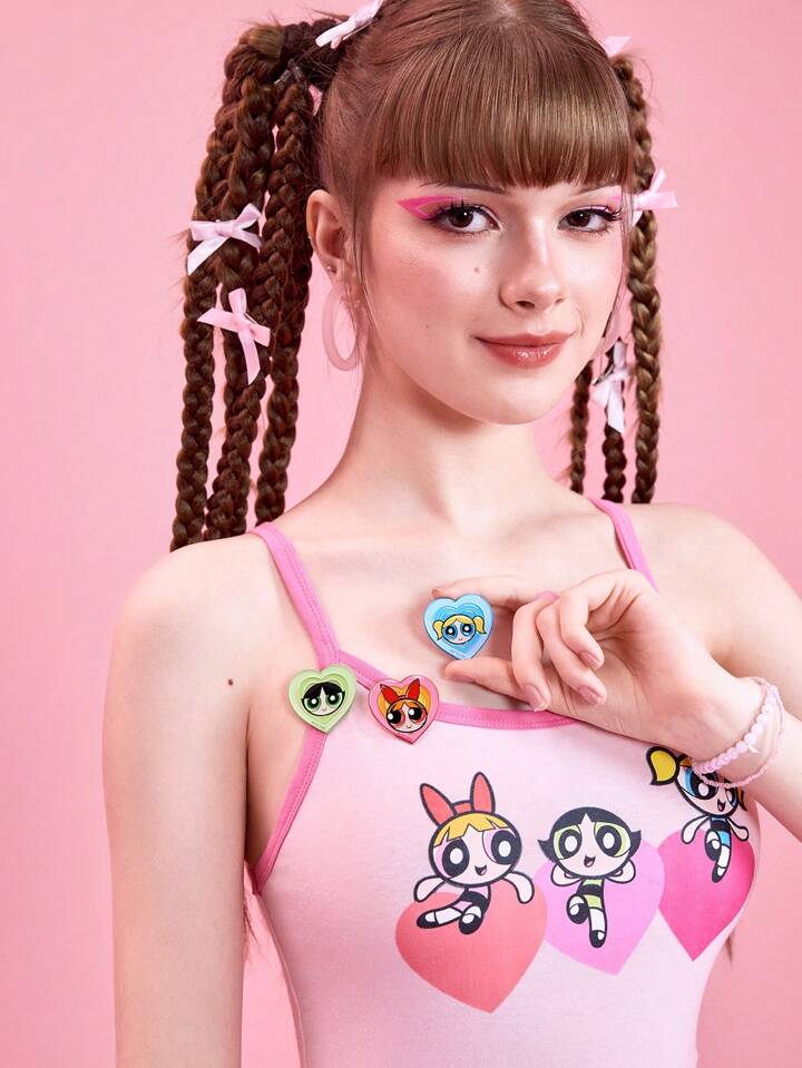 The Powerpuff Girls | ROMWE 3 أطقم شارة مخصصة بشكل قلب مزينة برسومات الشخصيات الكرتونية (بلوسم وبابلز وبتركاب)، لملحقات الملابس والحقائب، وحدة للجنسين، مناسبة لعيد الحب والأم وعيد الأم