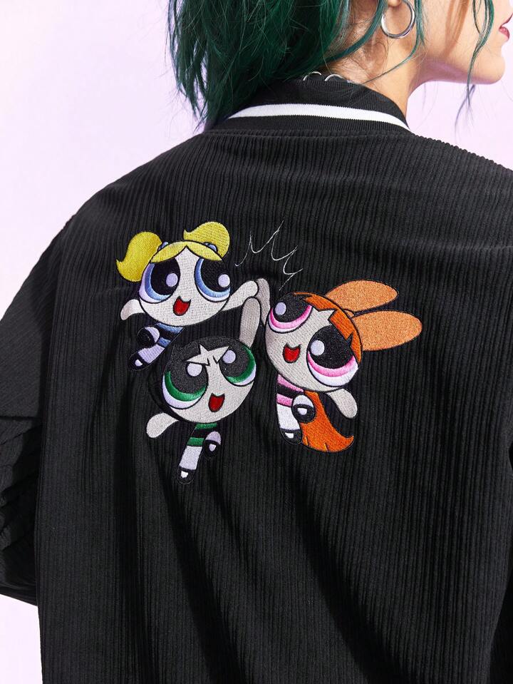 The Powerpuff Girls | ROMWE جاكيت مطرز نمط رسوم كارتون سستة