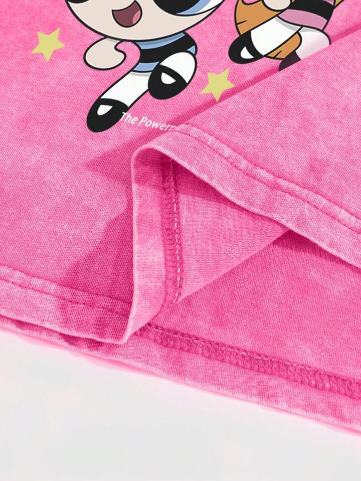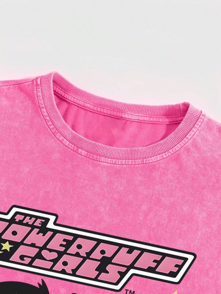 The Powerpuff Girls | ROMWE تي شيرت طاقم طباعة كرتونية للرجال، مدرسة