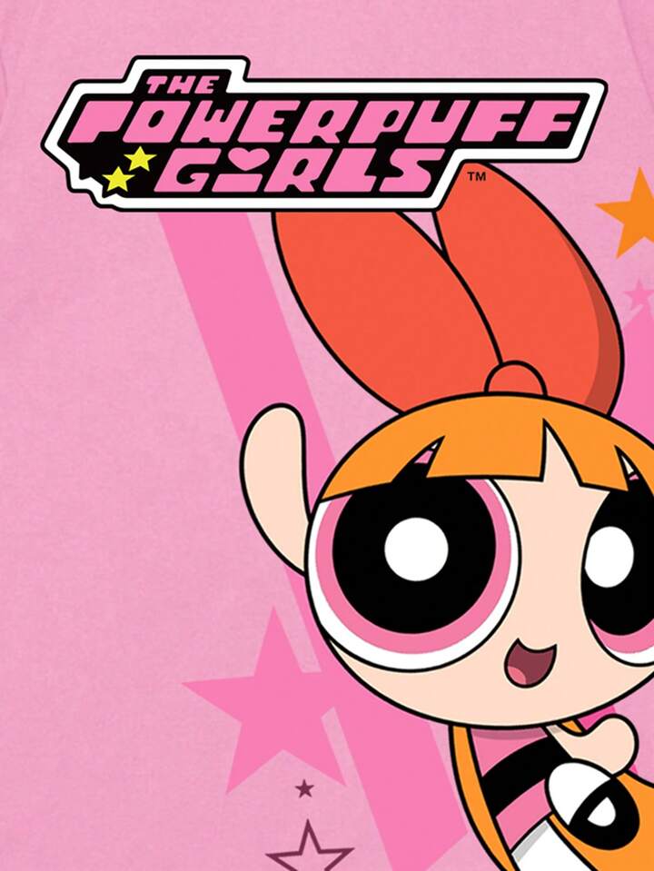 The Powerpuff Girls | ROMWE تي شيرت تي شيرت بياقة مستديرة وأكمام قصيرة بطباعة كرتونية للرجال، مناسب للارتداء اليومي في الربيع والصيف، المدرسة
