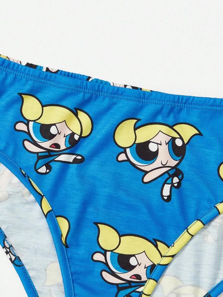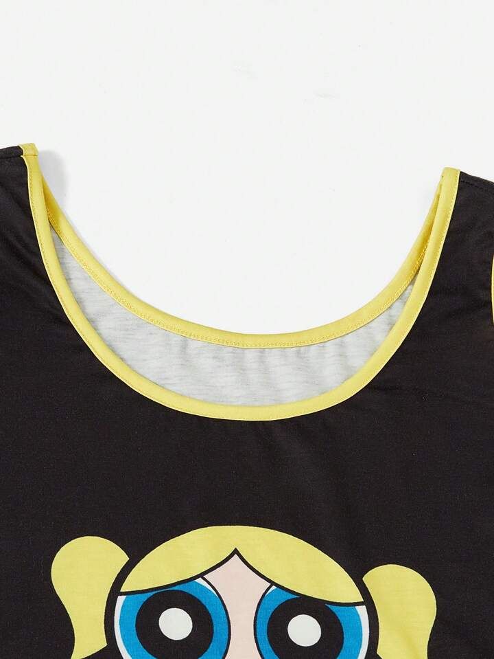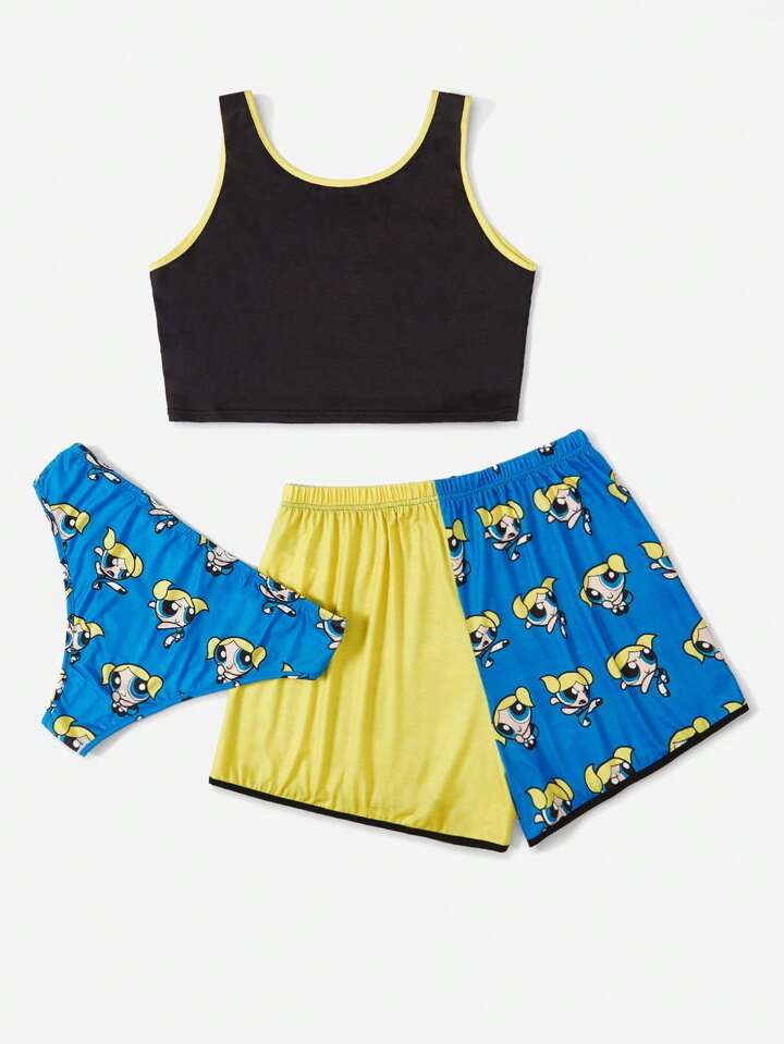 The Powerpuff Girls | ROMWE مزودة ب- طقم بيجاما مكون من 3 قطع بتصميم كرتوني جرافيكي برباط تبايني
