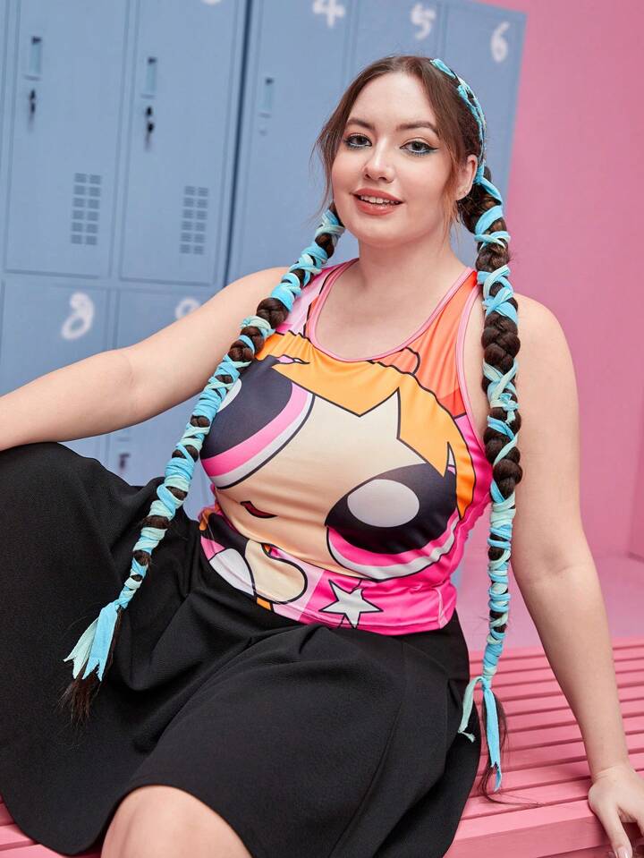 The Powerpuff Girls | ROMWE لباس علوي تانك صور رسوم كارتون مقاس كبير