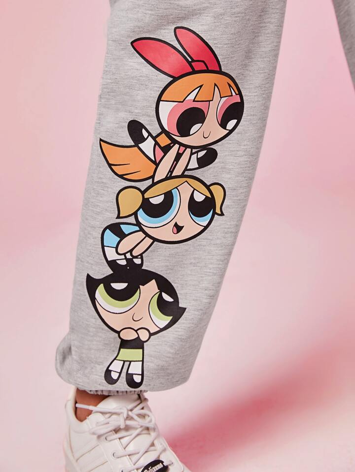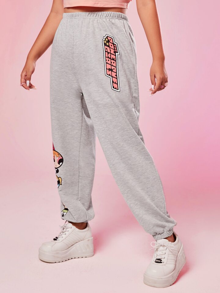 The Powerpuff Girls | ROMWE بناطيل رياضي بجرافيك عبارة ورسوم كارتون مقاس كبير
