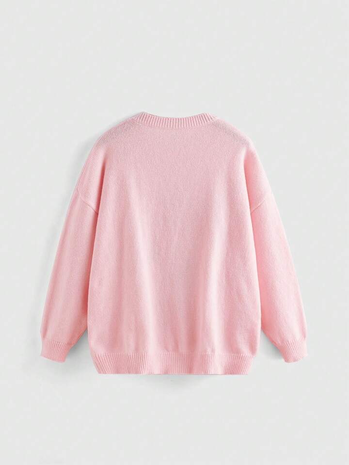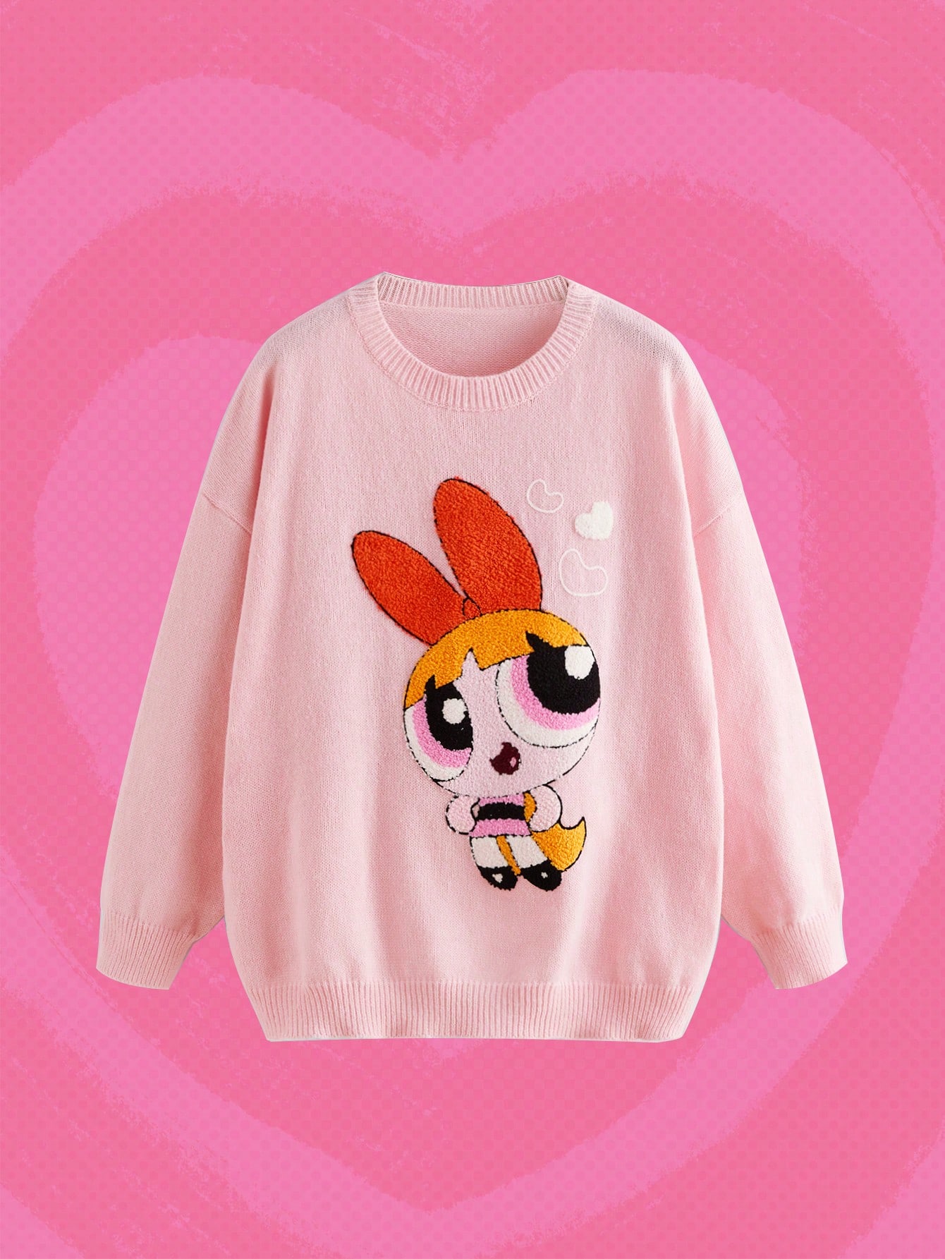The Powerpuff Girls | ROMWE كنزة صوف نمط رسوم كارتون منخفض الاكتاف مقاس كبير