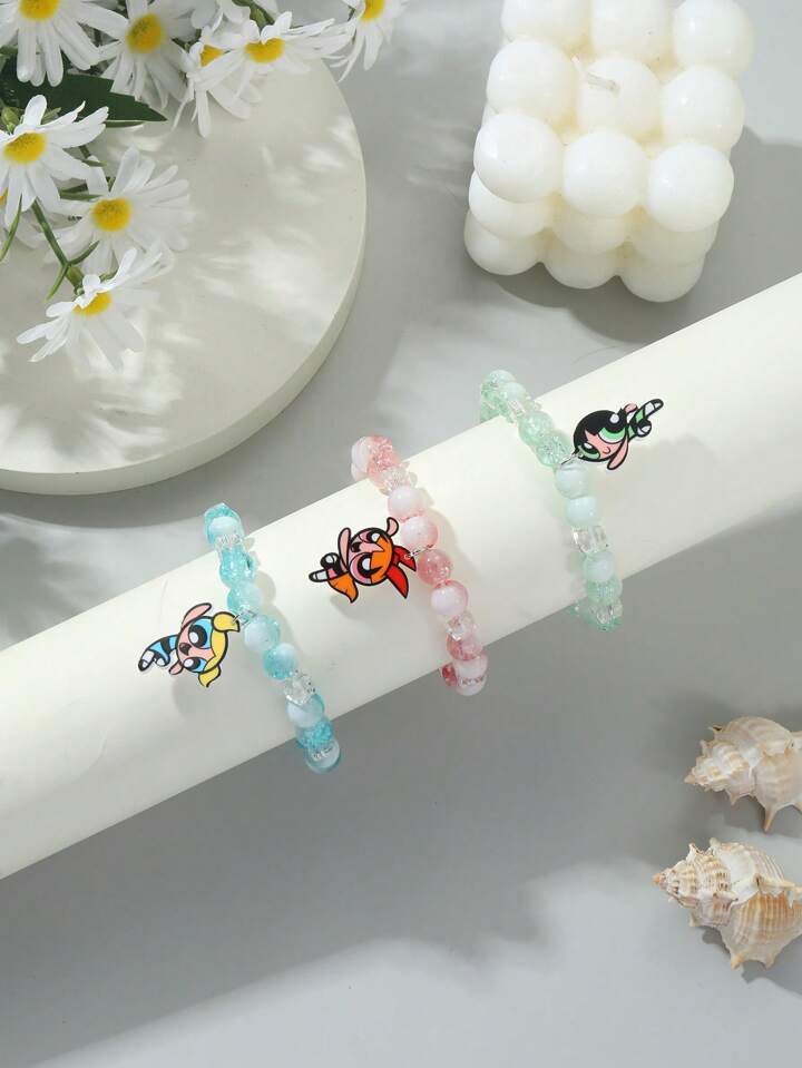 The Powerpuff Girls | ROMWE مجموعة من 3 أساور من خرز زجاجي مزينة بنمط كرتوني