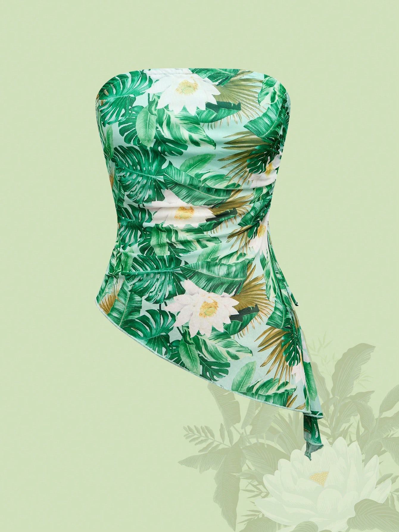 The White Lotus ملابس علوية أنبوبة قصير بخصر منكمش وذيل غير متماثل بطبعة استوائية، مناسب لصيف وعطلات الشاطئ
