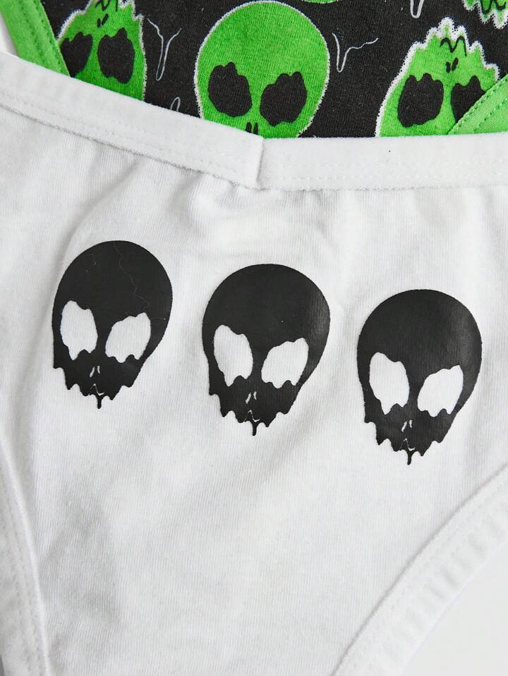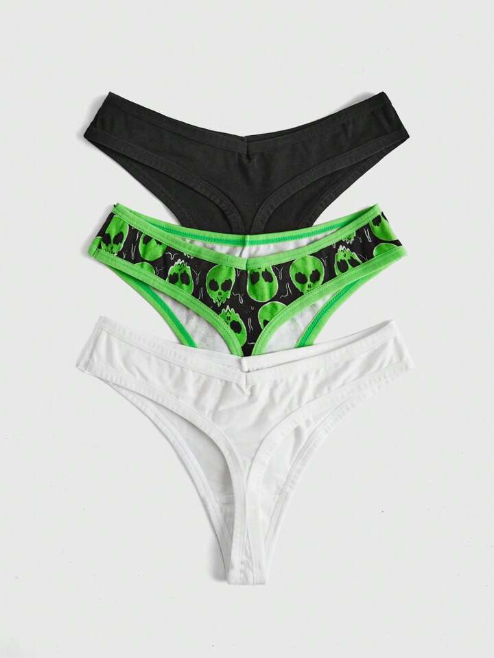 Therisingrose ثلاثة قطع من الثونغ المطبوع بالجماجم للنساء