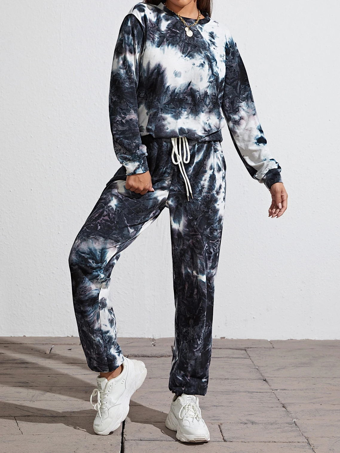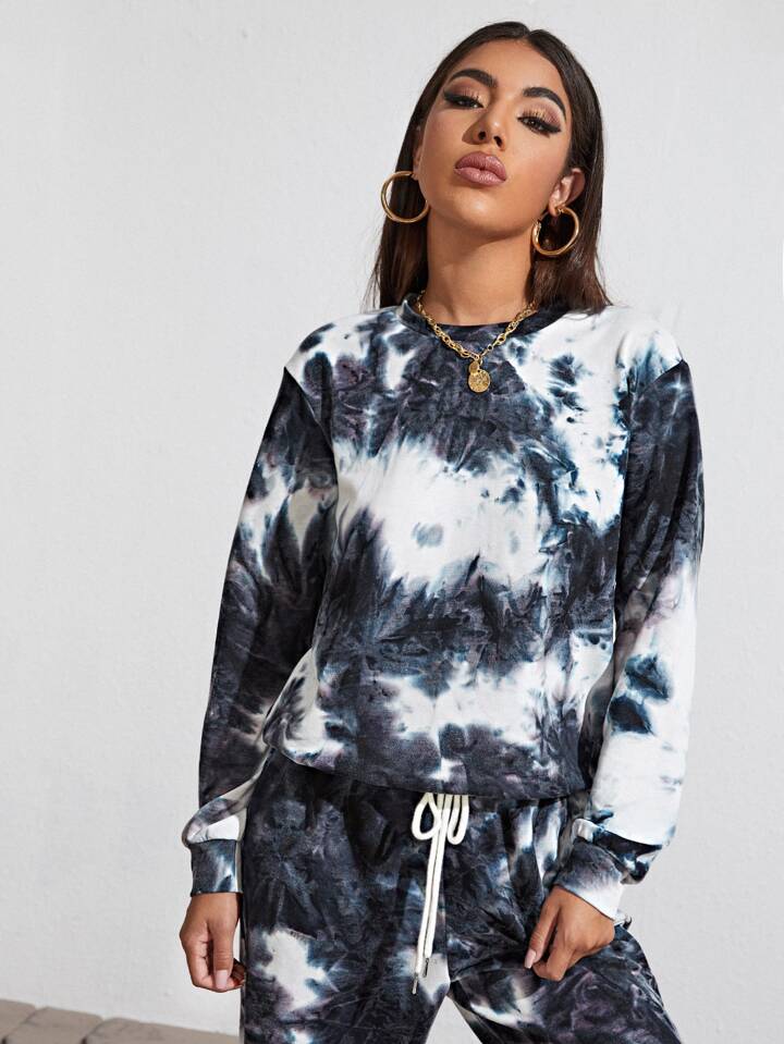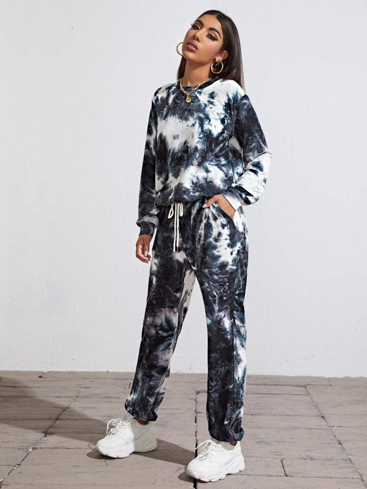 طقم سروال بجيب مائل مع كنزة صوفية بصبغ متعادل