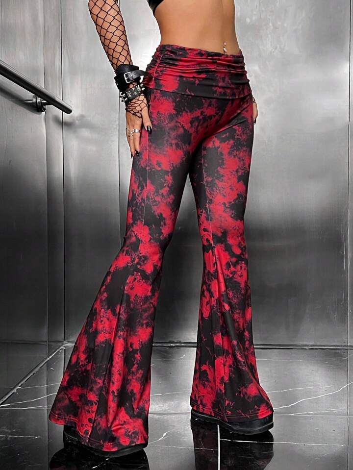 بنطلون بساق واسع صبغ متعادل تجاعيد