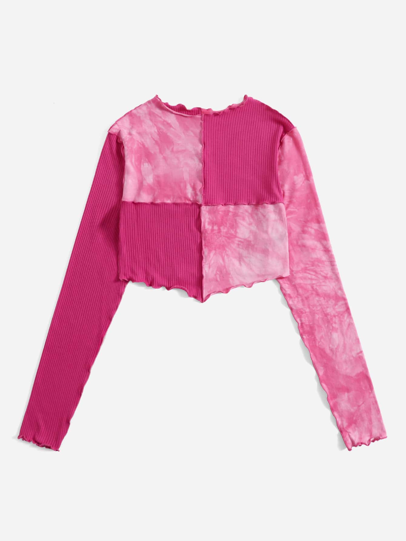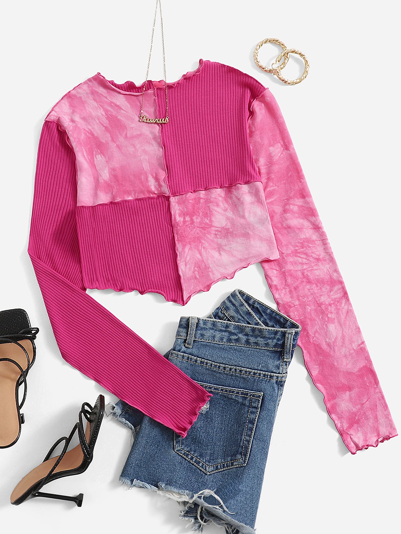 تي شيرت قصير صبغ متعادل مقلم بغرز محبوك مضلع