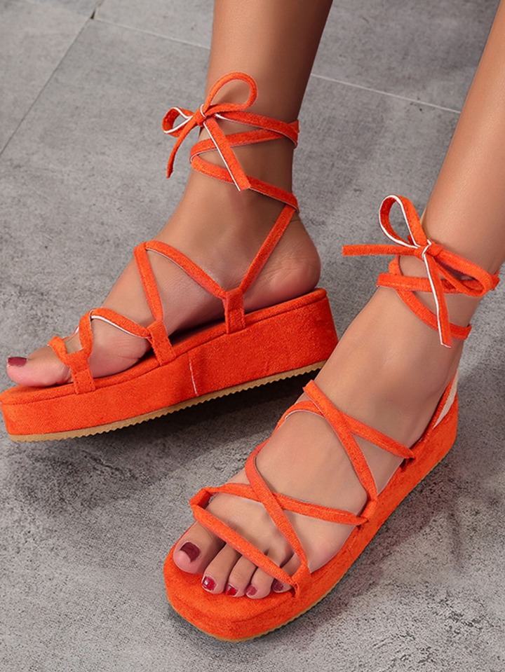 صنادل بأشرطة ربطة ساق تصميم نعل سميك