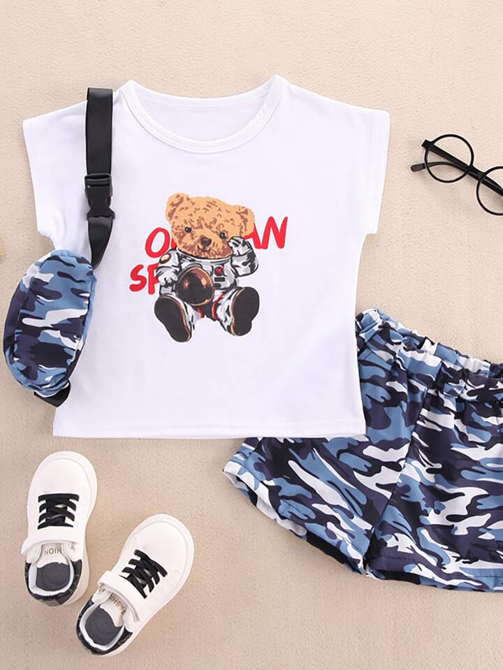 تي شيرت بجرافيك رسوم كارتون مع شورت مموة للاولاد الصغار