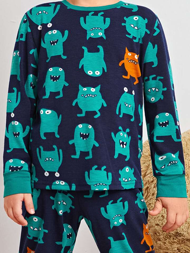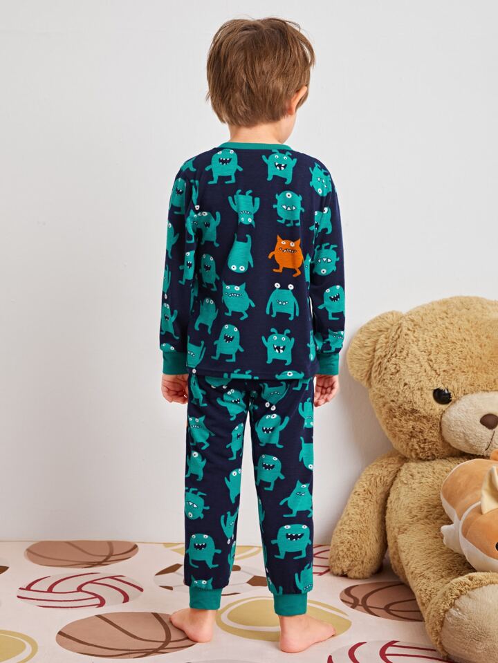 طقم بيجامة توب بجرافيك كرتون وبنطلون طفل صغير