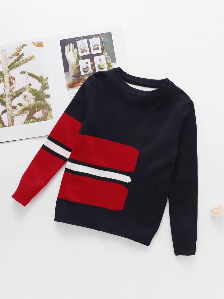 سترة صوفية بياقة دائري وبلوحة متباين للاولاد الصغار