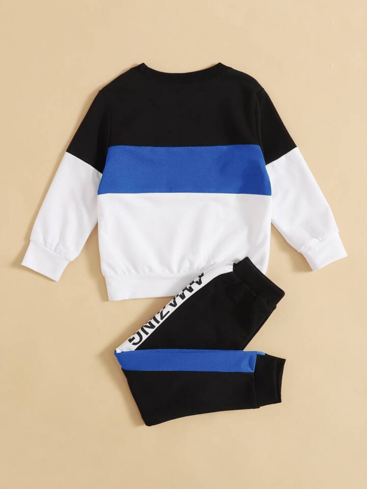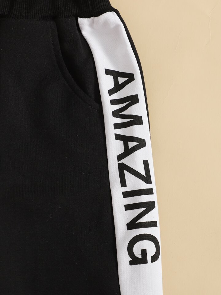 سروال رياضي مع قميص ثقيل بجرافيك عبارة وبقص وخياطة للاولاد الصغار