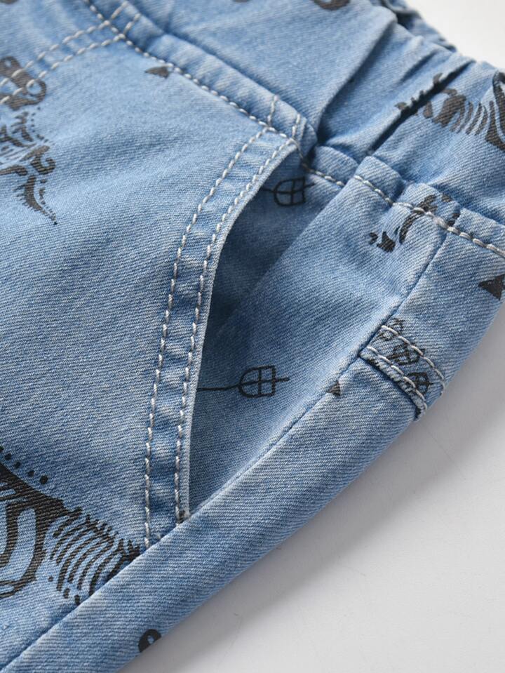 شورت جينز بطباعة ديناصور للاولاد الصغار