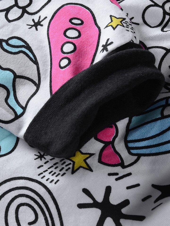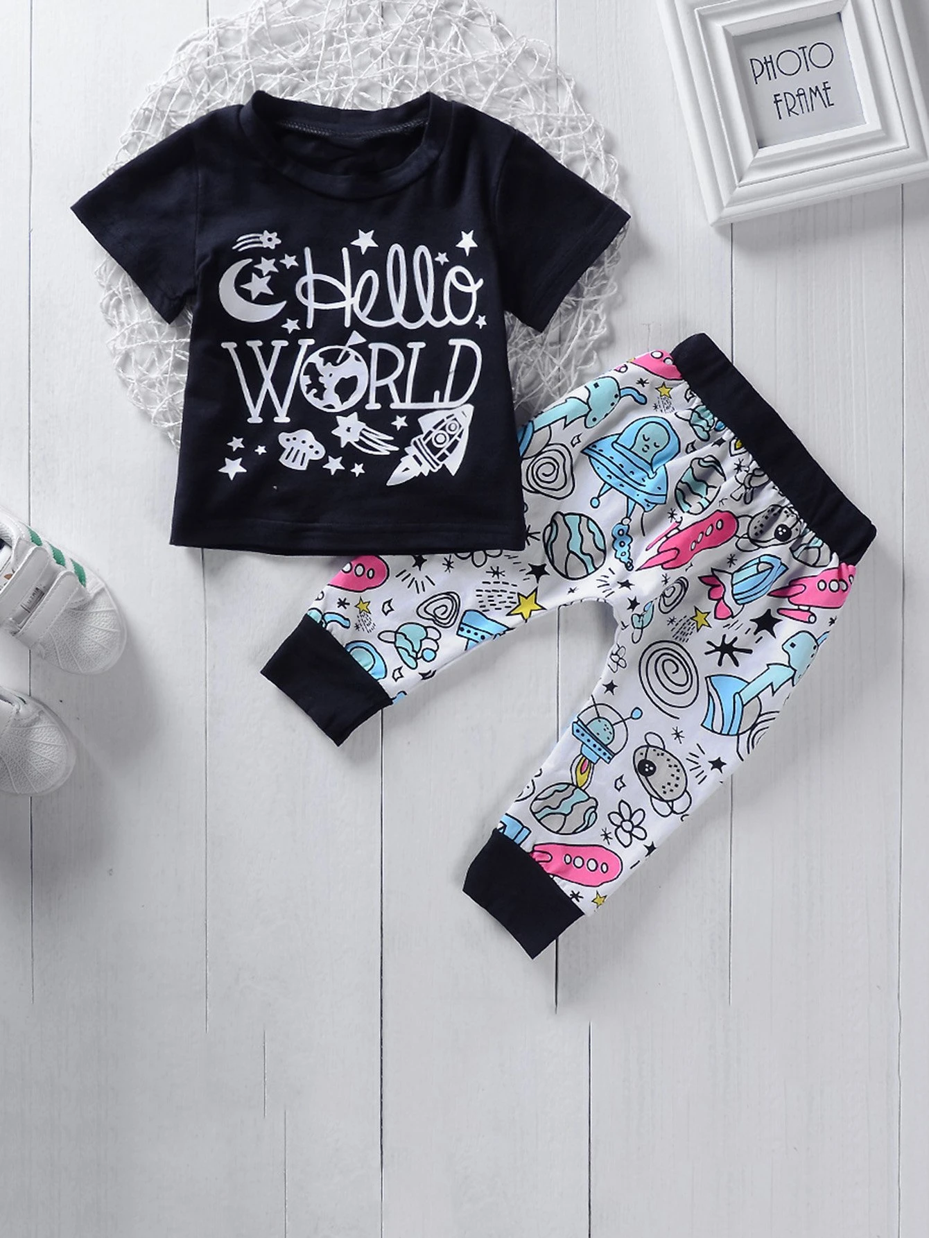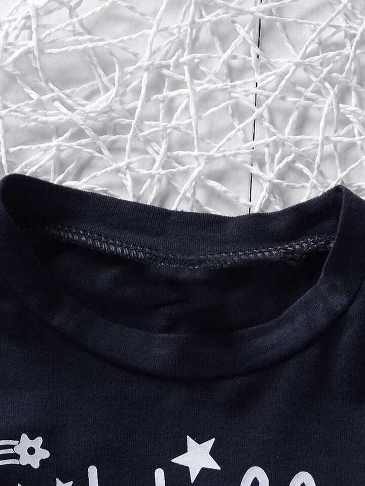 تي شيرت بناتي بطباعة كارتوني وحروف مع سروال