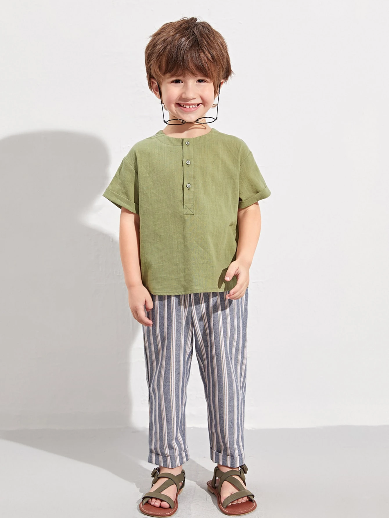 لباس علوي بأزرار أمامي بكفة ملتف للأولاد الصغار