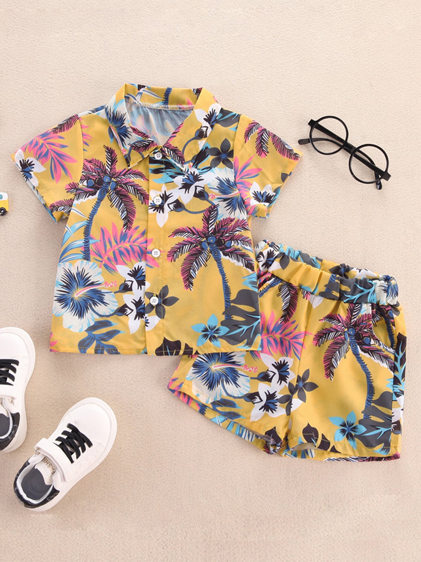 استوائي و طباعة زهور أزرار علوية قميص و شورت للاولاد صغار