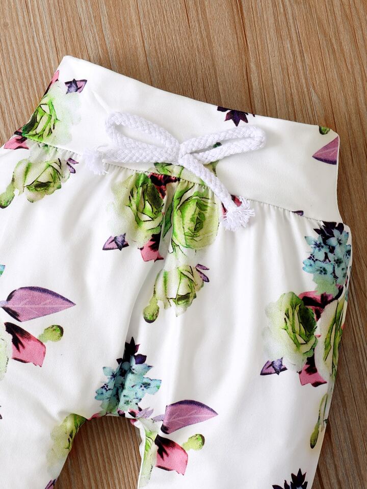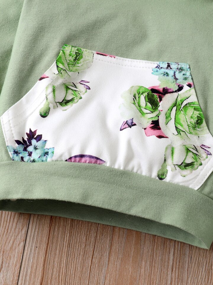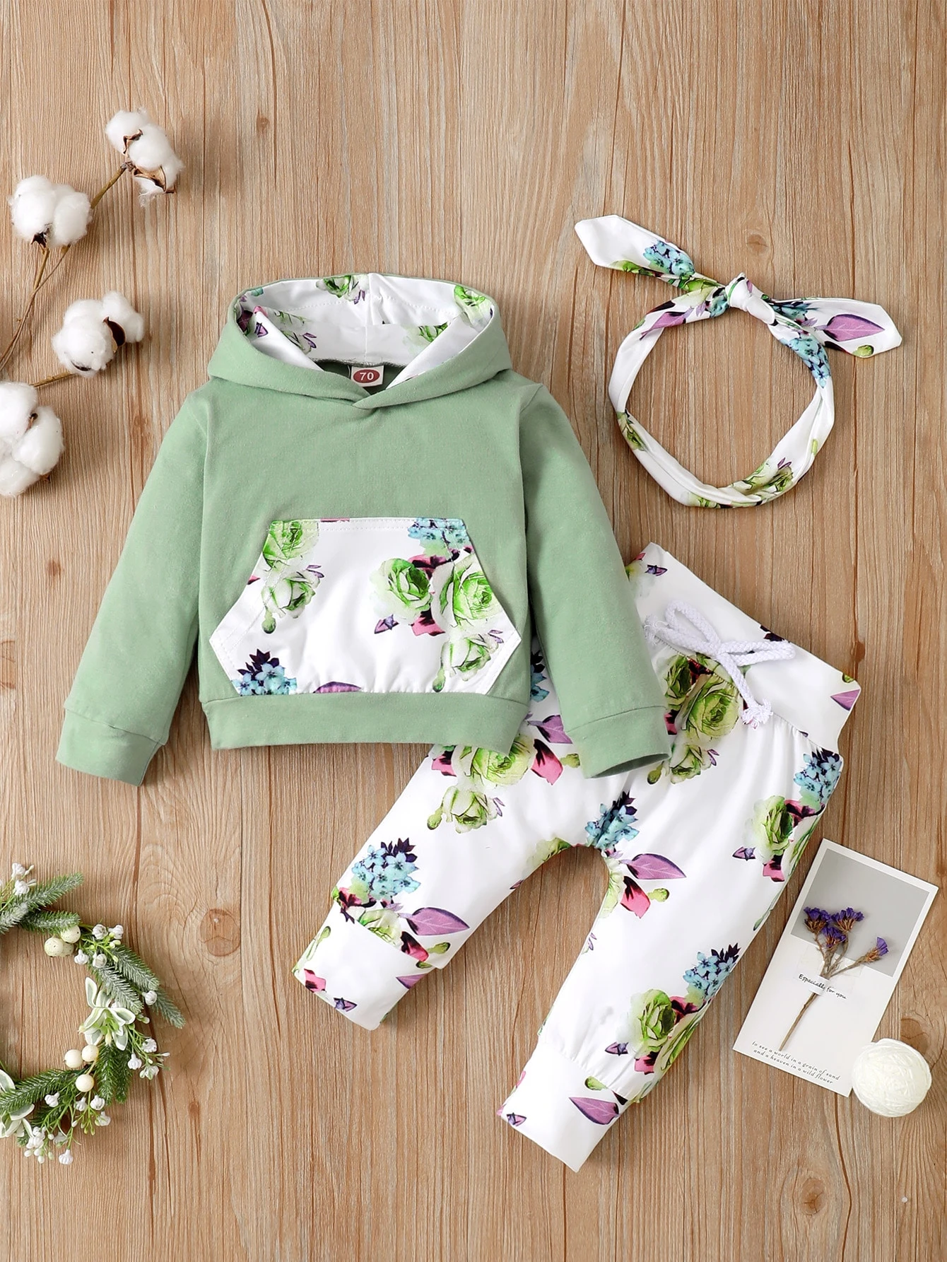 بنطلون مع هودي بطباعة زهر مع عصابة راس للبنات الصغار