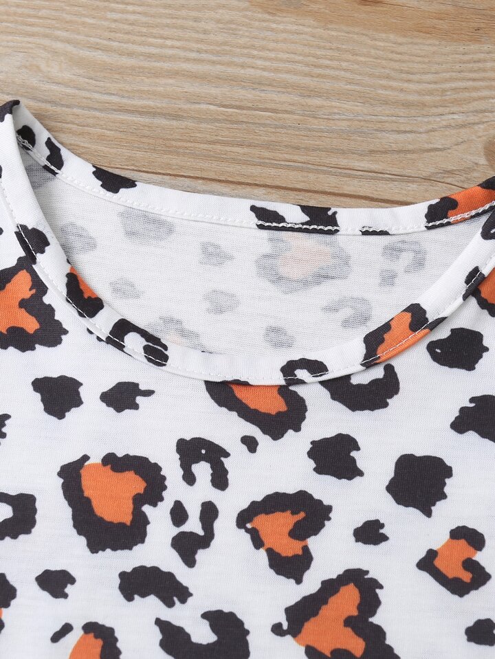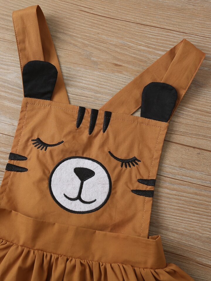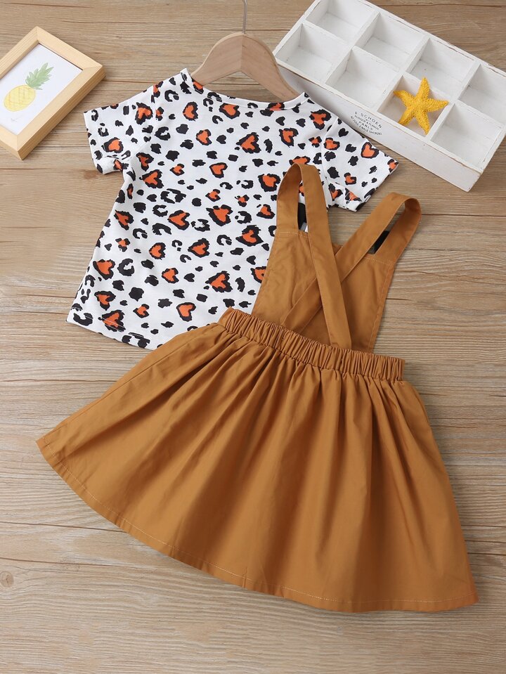 تيشيرت بطباعة متكررة مع فستان أفرول مطرز طفلة صغيرة