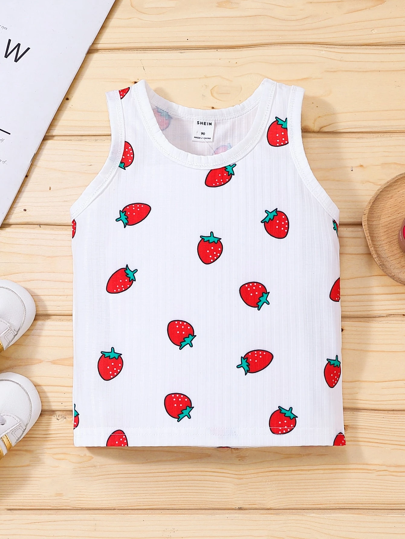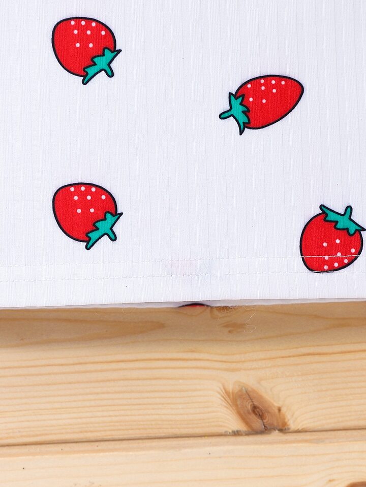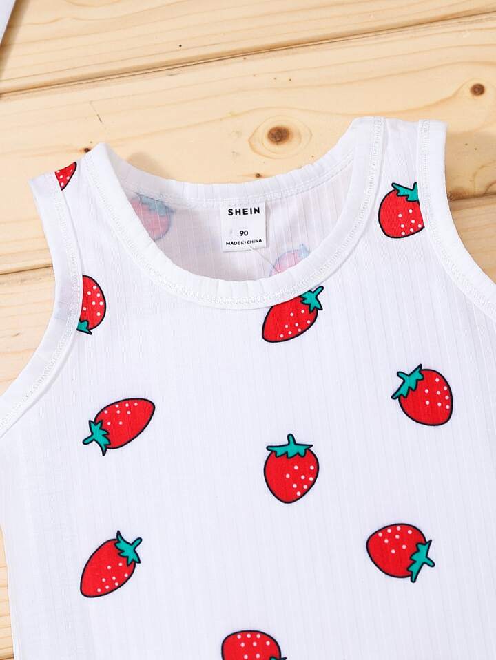 لباس علوي تانك بطباعة فراولة شامل للبنات الصغار