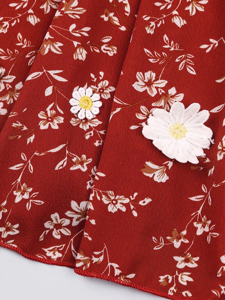 فستان كامي مدرز بطباعة أزهار مزين للبنات الصغار