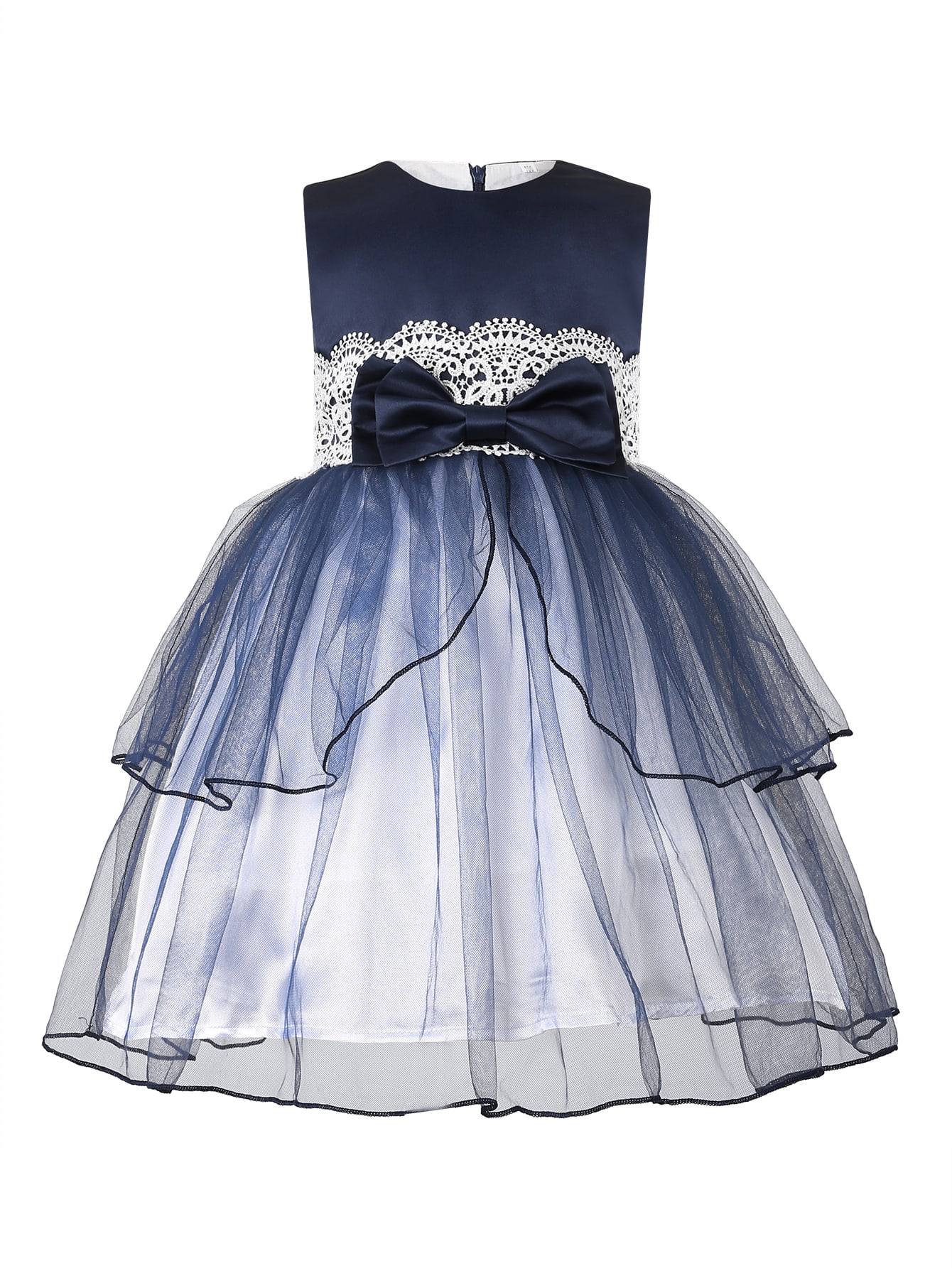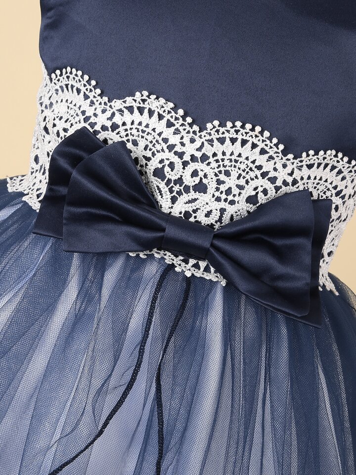 فستان فضفاض شبكي بقوس امامي للبنات الصغار