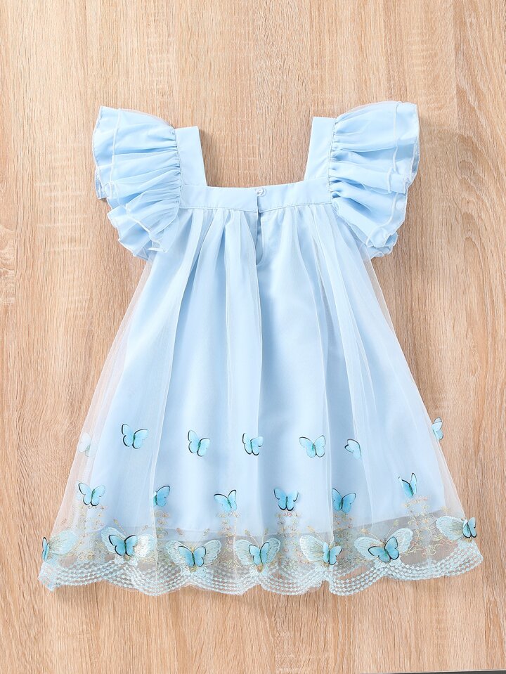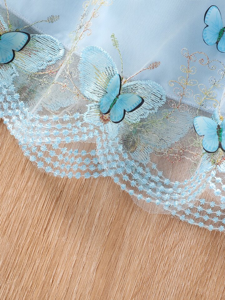 فستان شامل مطرز شبكي بفراشة للبنات الصغار