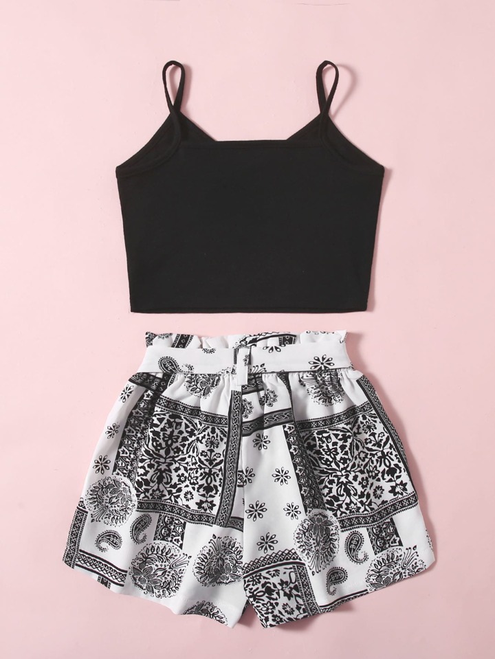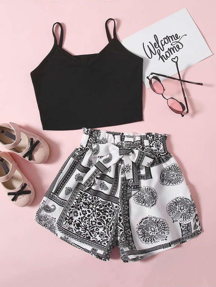 شورت بحزام بيزلي مع لباس علوي كامي للبنات الصغار
