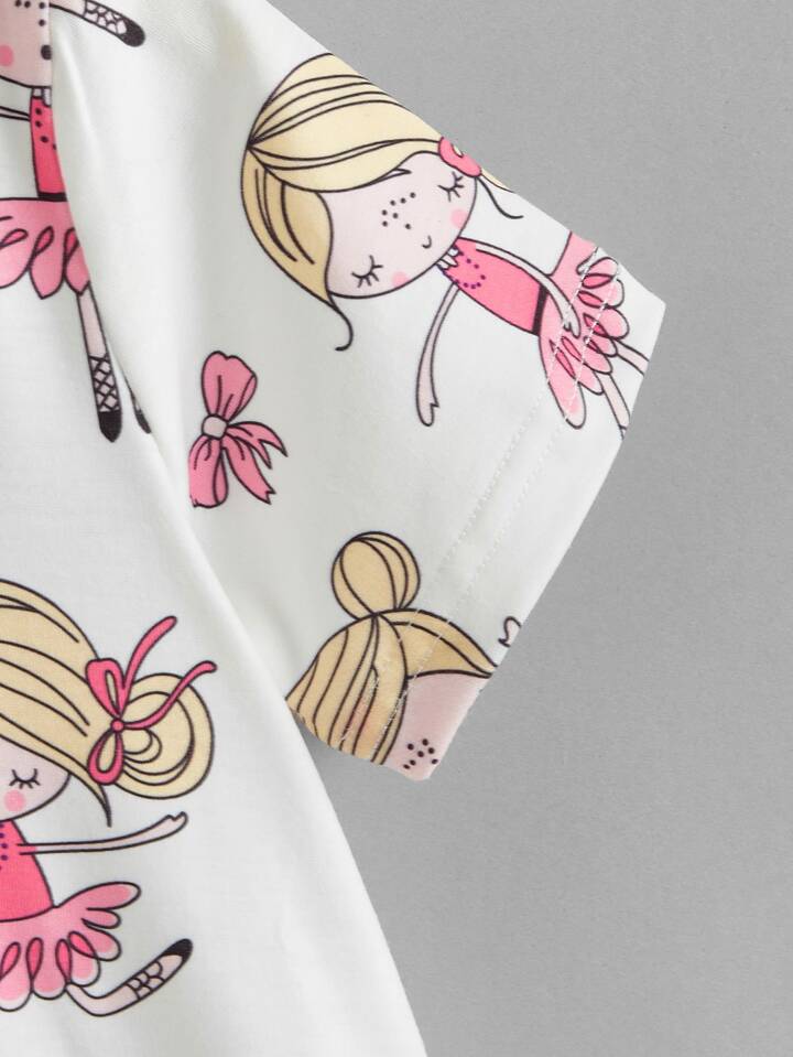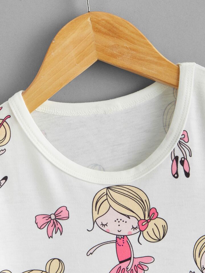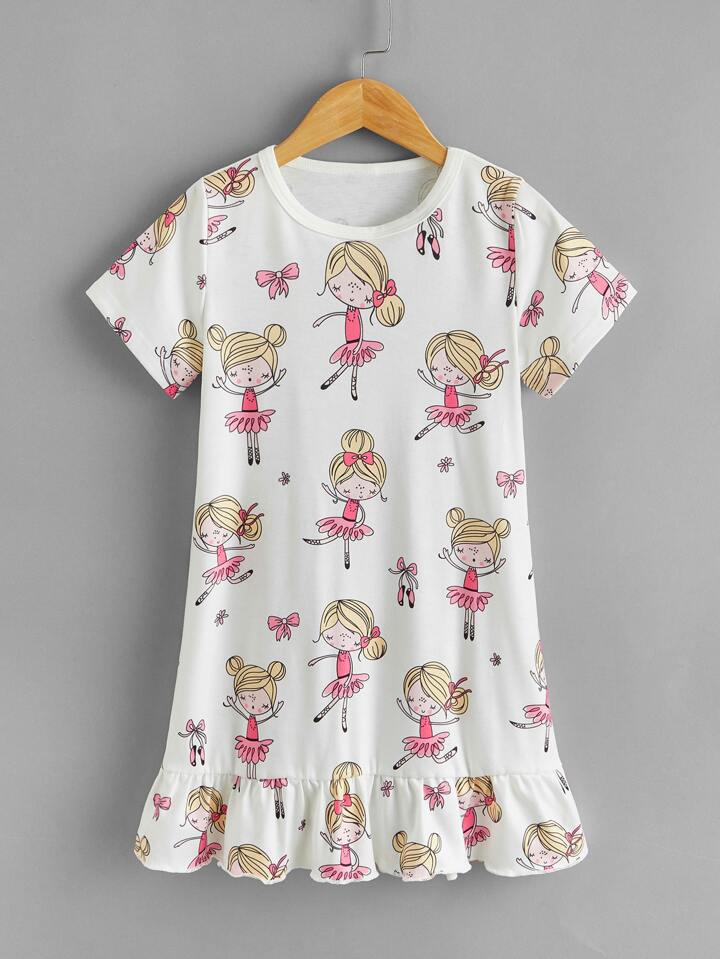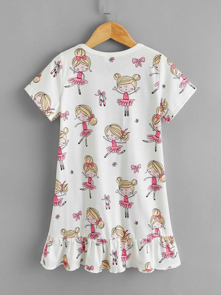 فستان ليلي بحافة مكشش بطباعة شكل كارتون للبنات الصغار