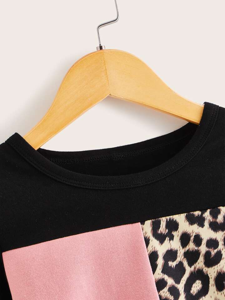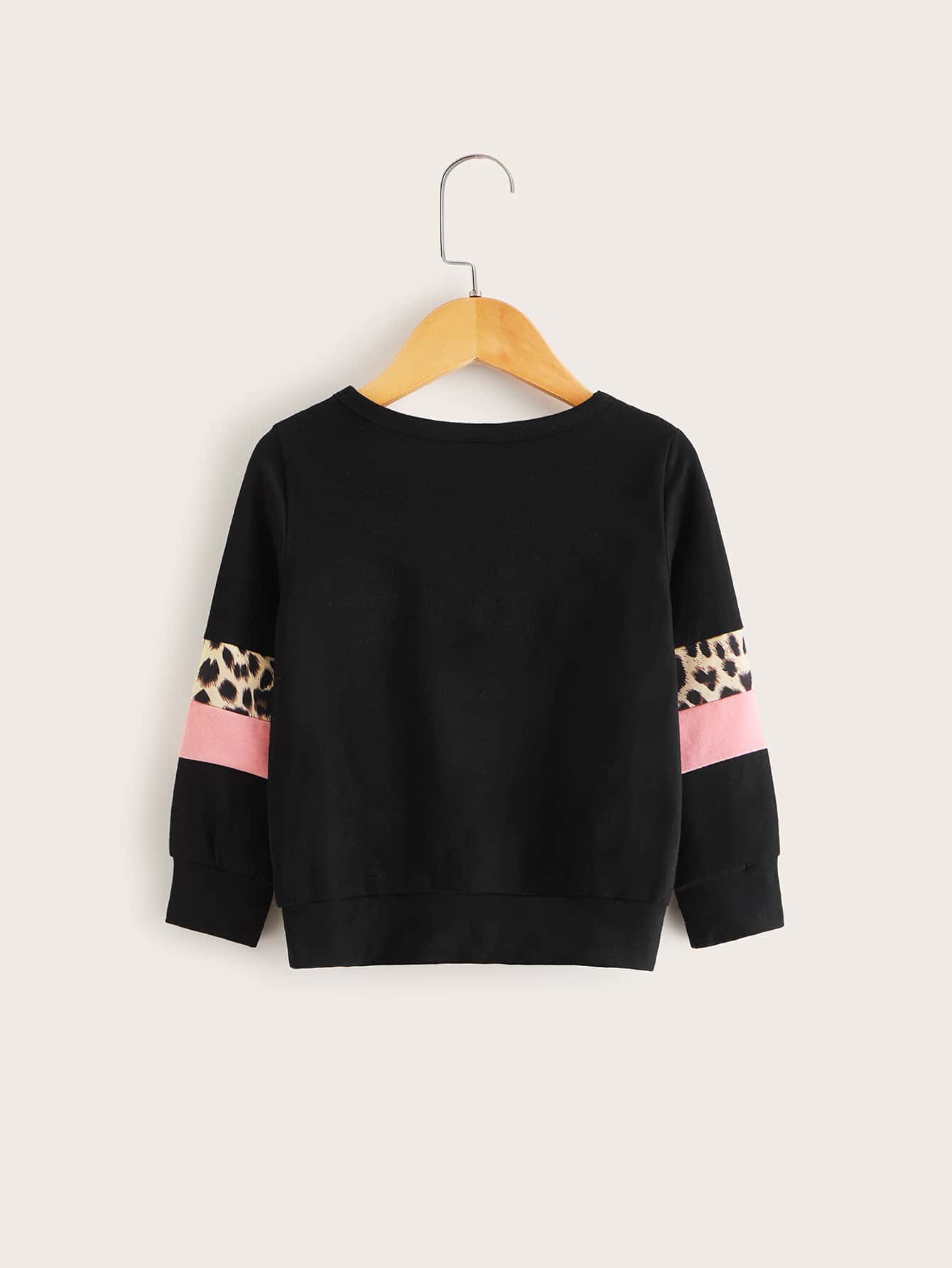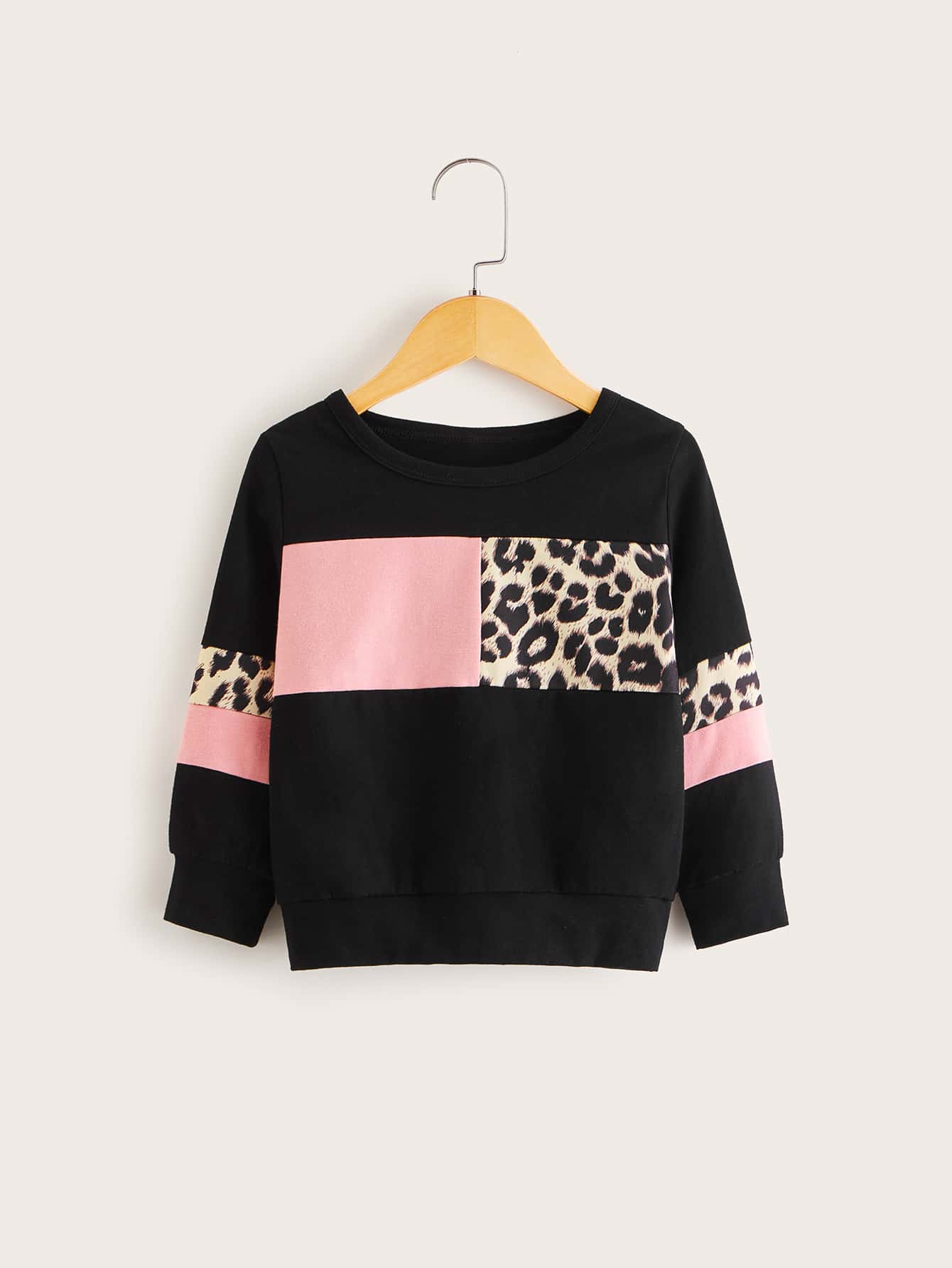 سويت شيرت نمط جلد الفهد بلوحة متباين للبنات الصغار