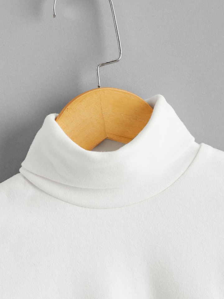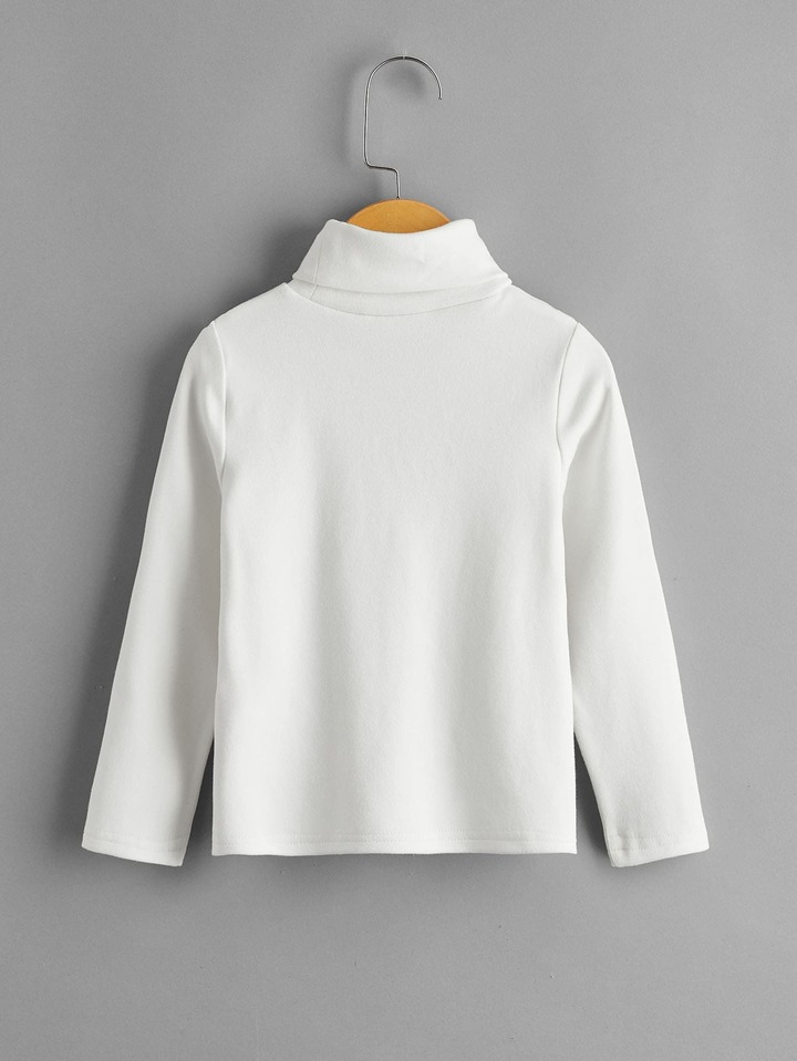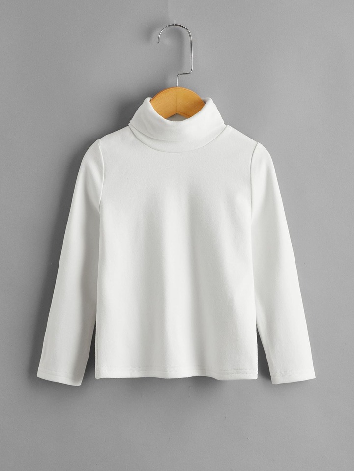 تي شيرت موحد لون قطن عنق ملفوفة للبنات الصغار