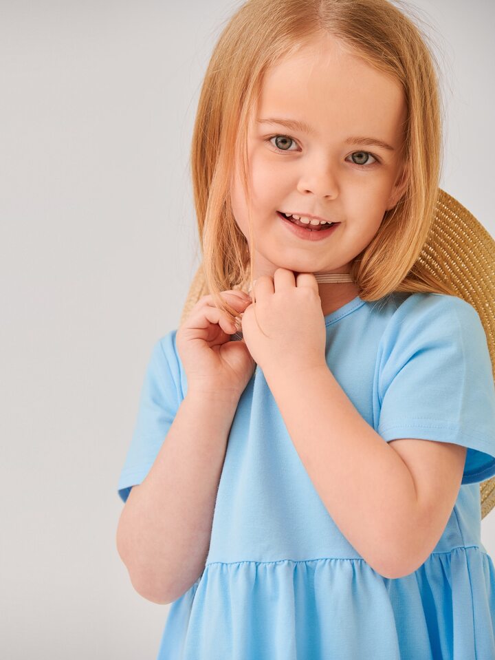 فستان سموك قطن موحدة اللون للبنات الصغار