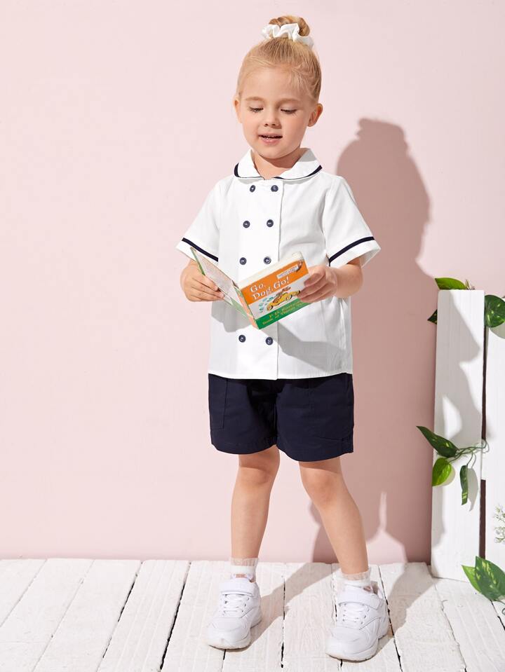 بلوزة بأزرار امامي مزدوج للبنات الصغار