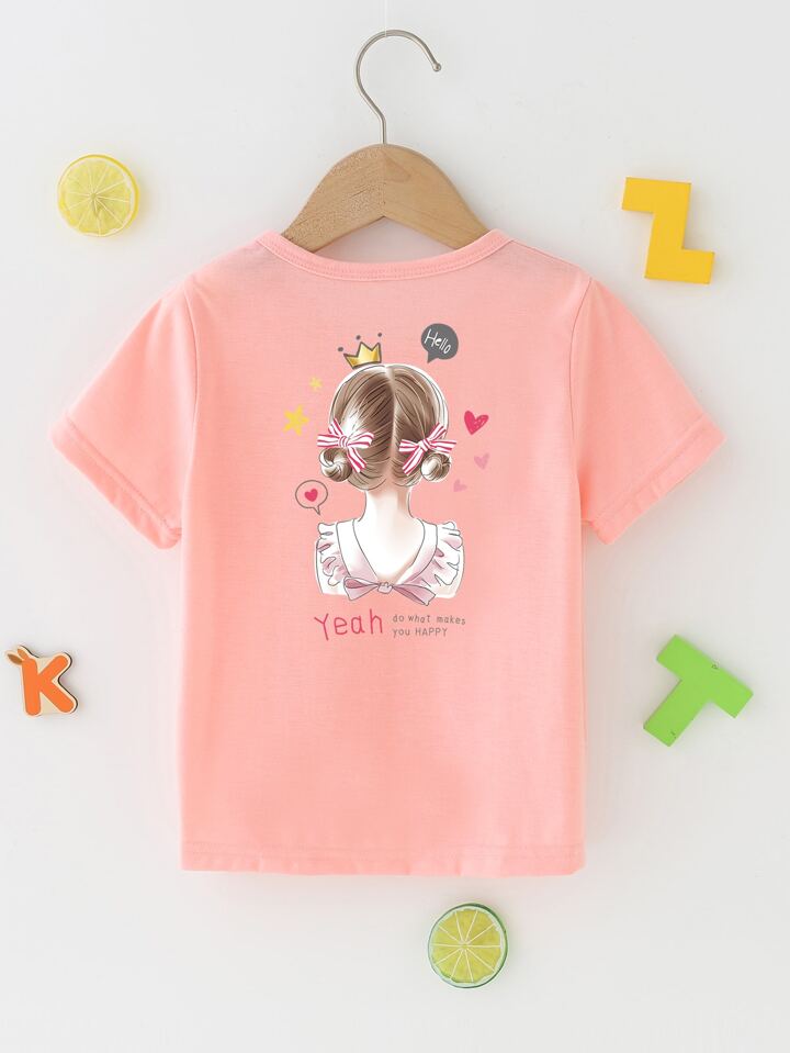 تي شيرت بجرافيك عبارة وشكل للبنات الصغار