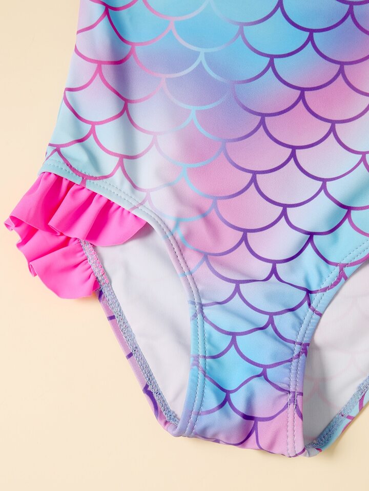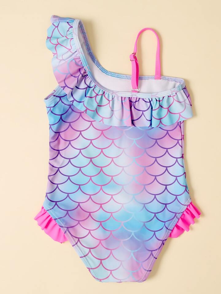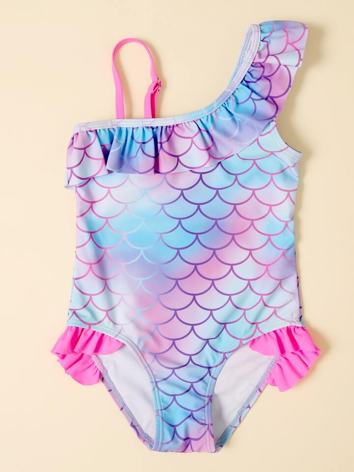 ملابس سباحة قطعة واحدة مكشكش جداول بقرش السمك للفتيات الصغيرات