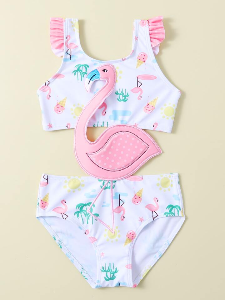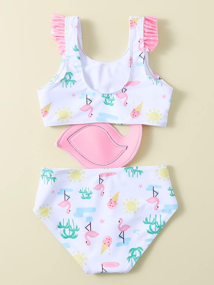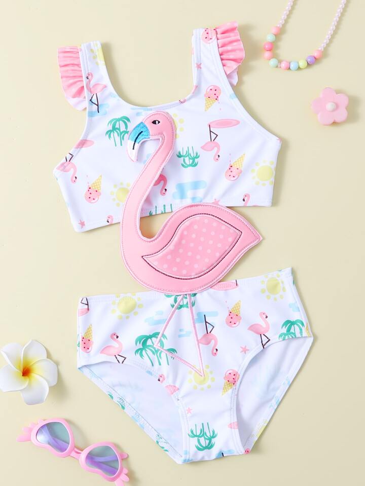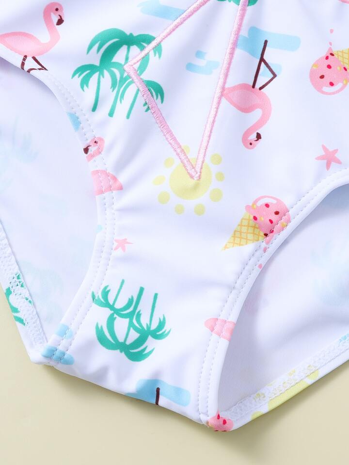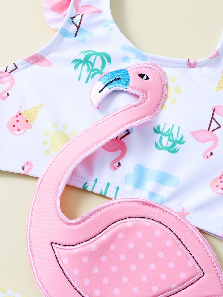 ملابس سباحة قطعة واحدة مزين فلامنغو للبنات الصغار