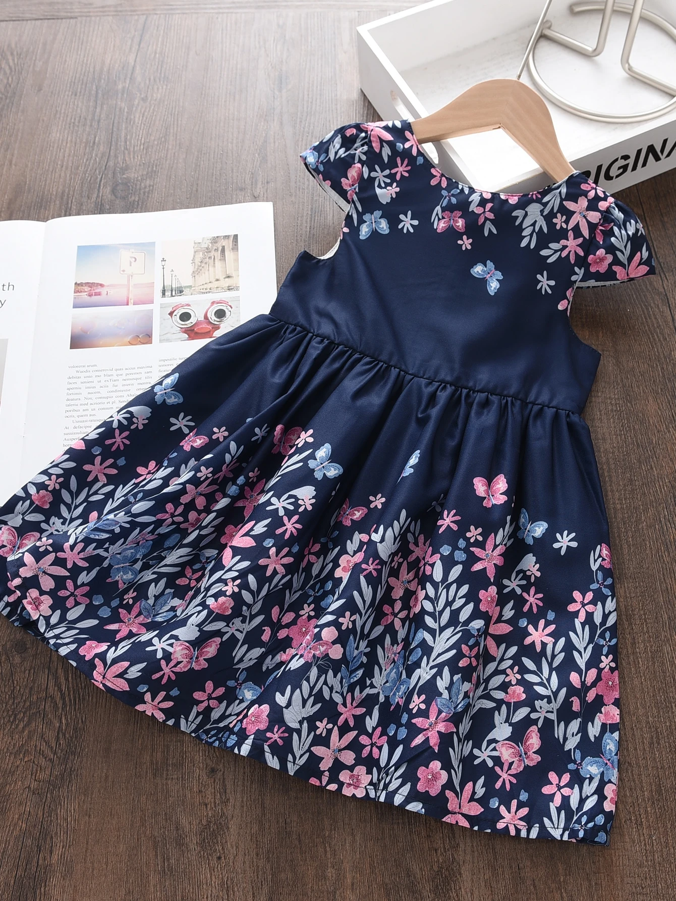 فستان سموك بازرار خلفي بطباعة أزهار للبنات الصغار