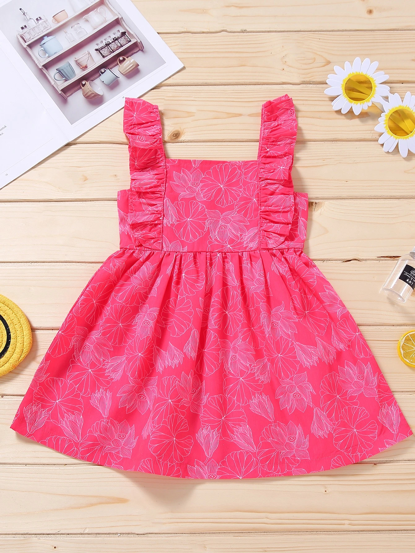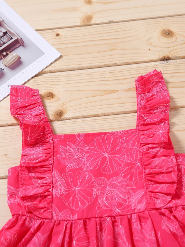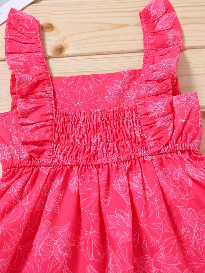 فستان مقلم مكشكش وبطباعة زهر للبنات الصغار