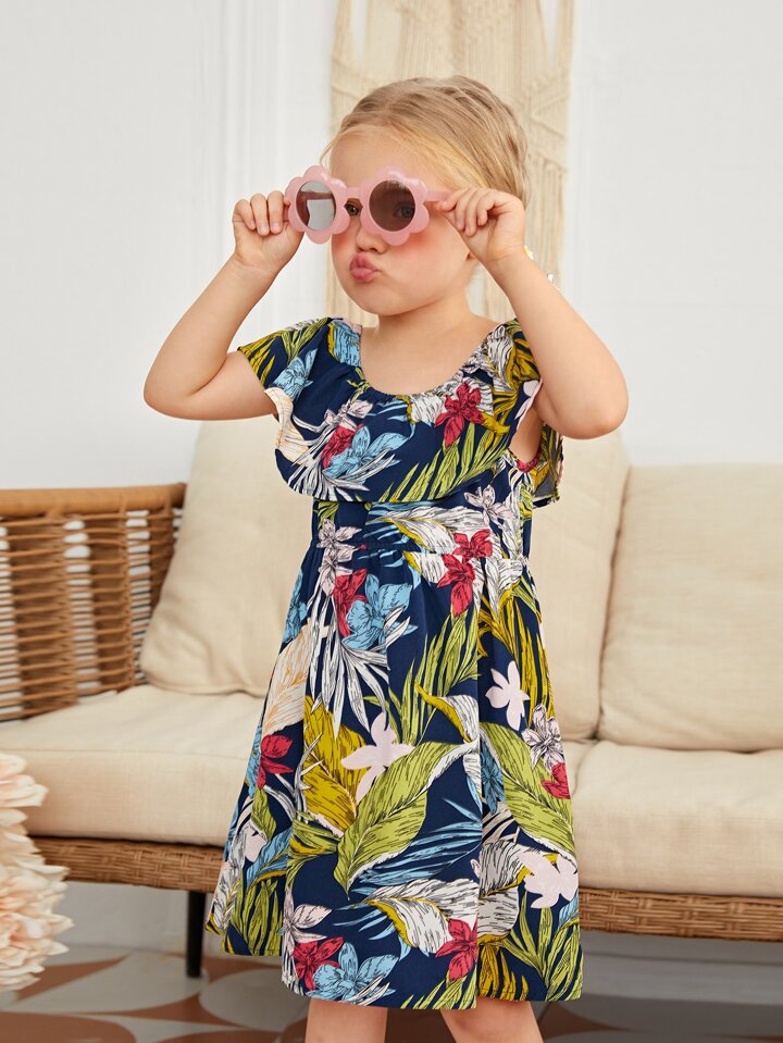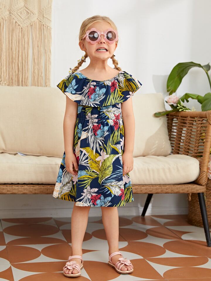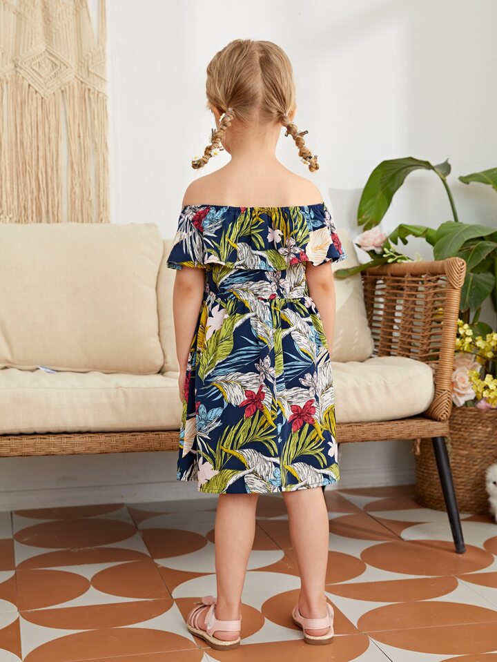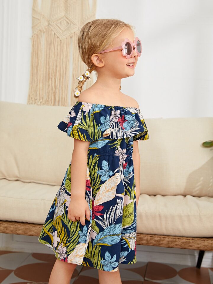 فستان استوائي مكشوف الكتف منتفضة للبنات الصغار