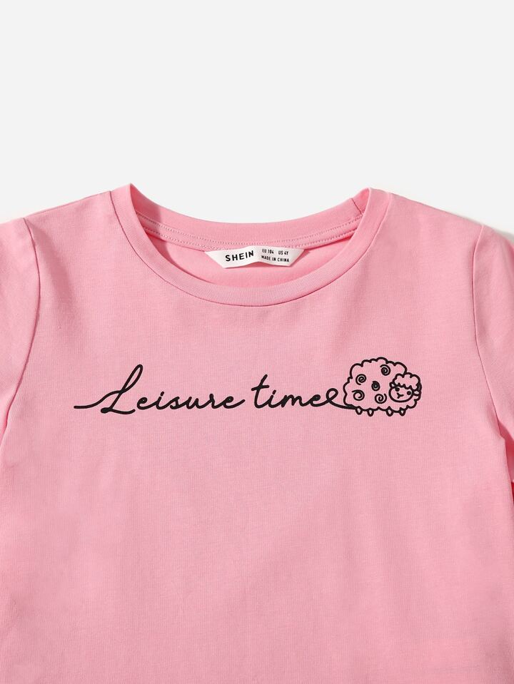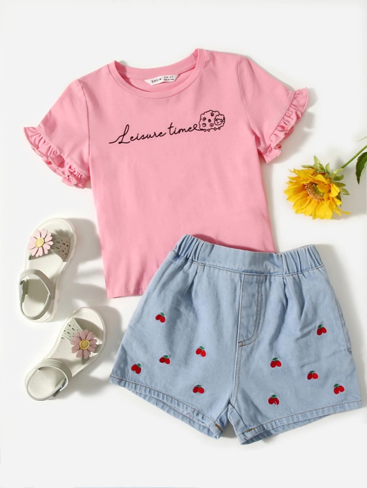 ملابس علوية للأطفال بنات كشكش الثوب تصميم الكرتون رسالة لطيفة