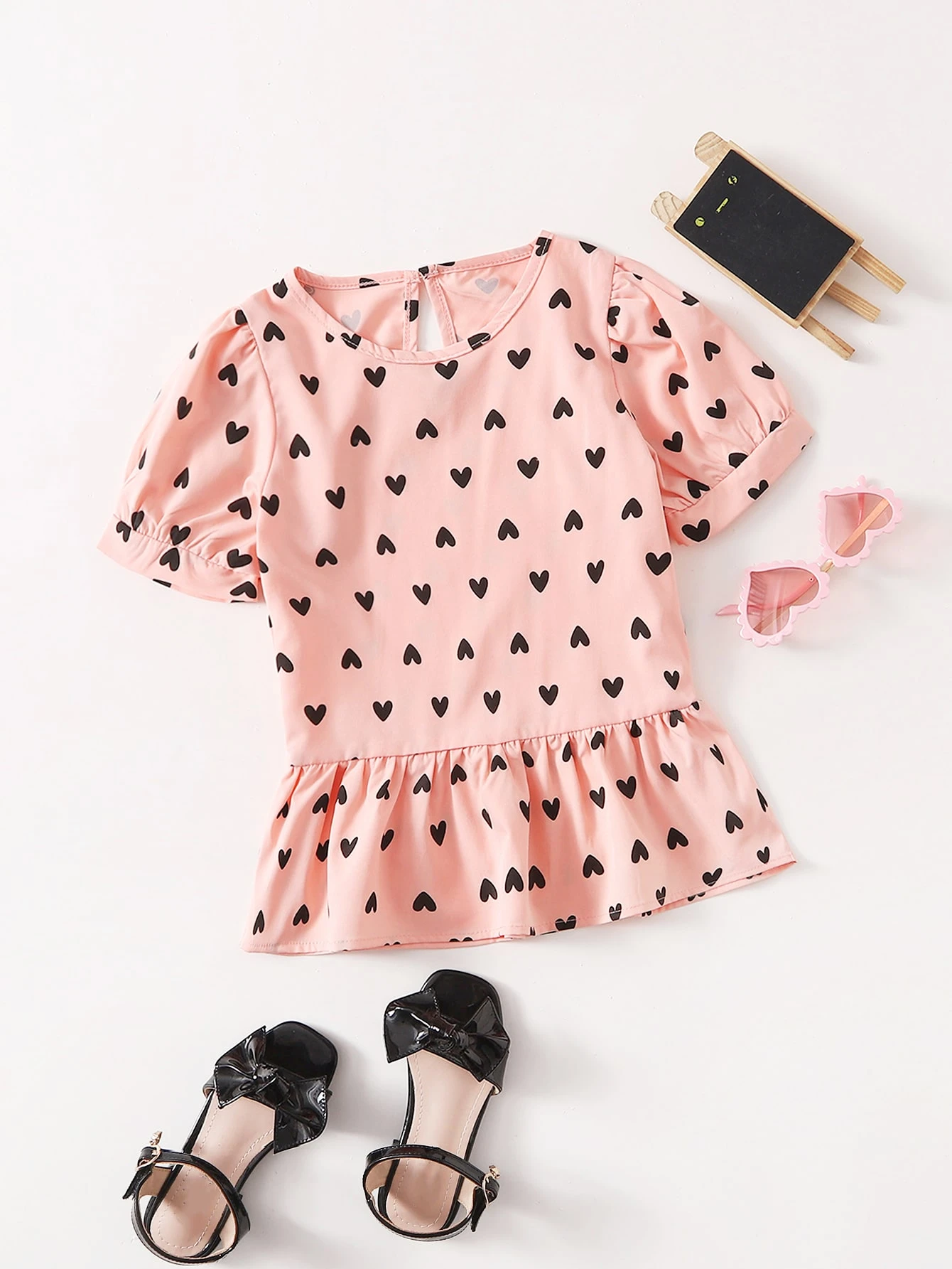 فستان بيبيدول بطباعة قلب للبنات الصغار