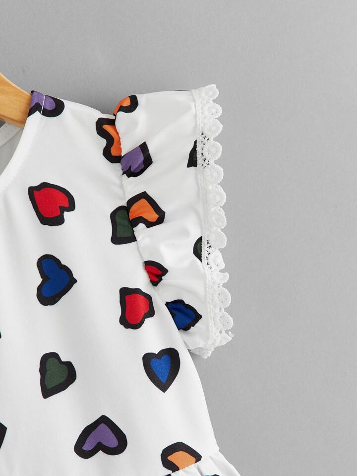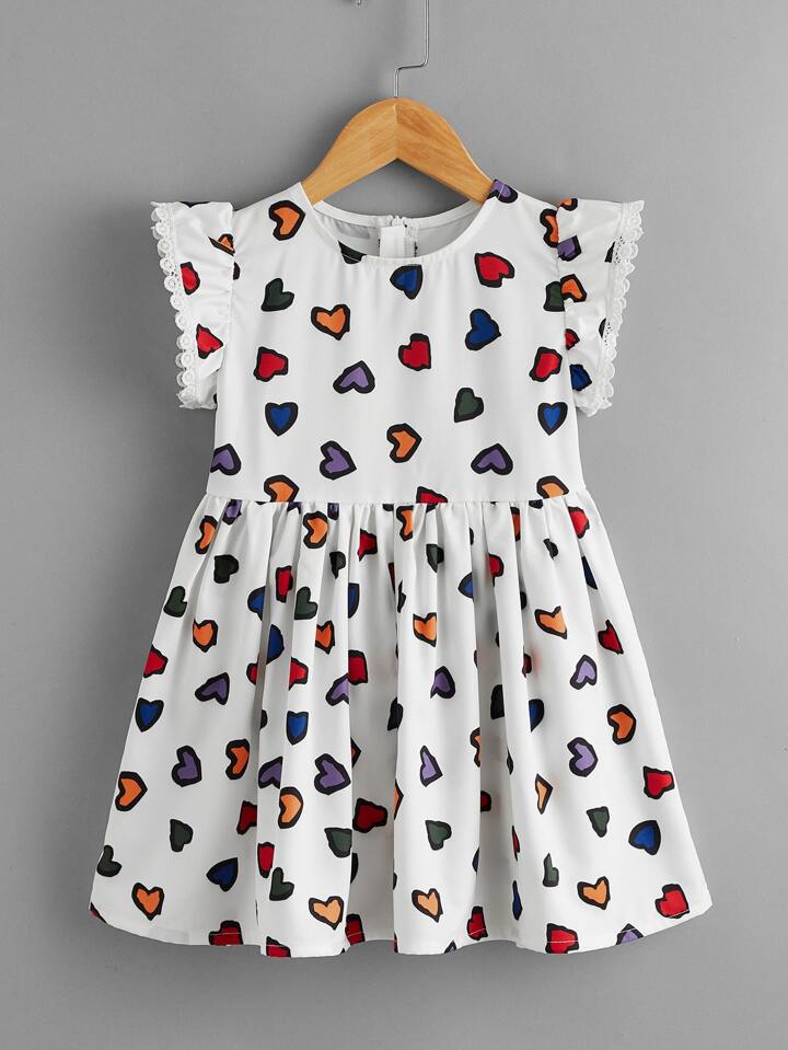 فستان مقلم دانتيل بطباعة قلب للبنات الصغار