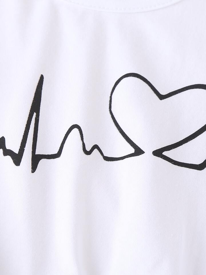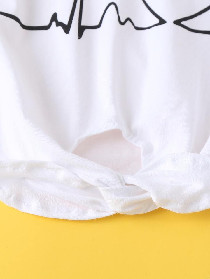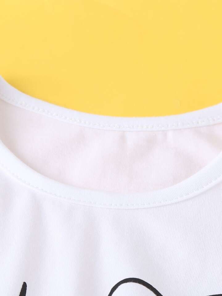 تنورة مع تي شيرت بربطة امامي بطباعة قلب للبنات الصغار